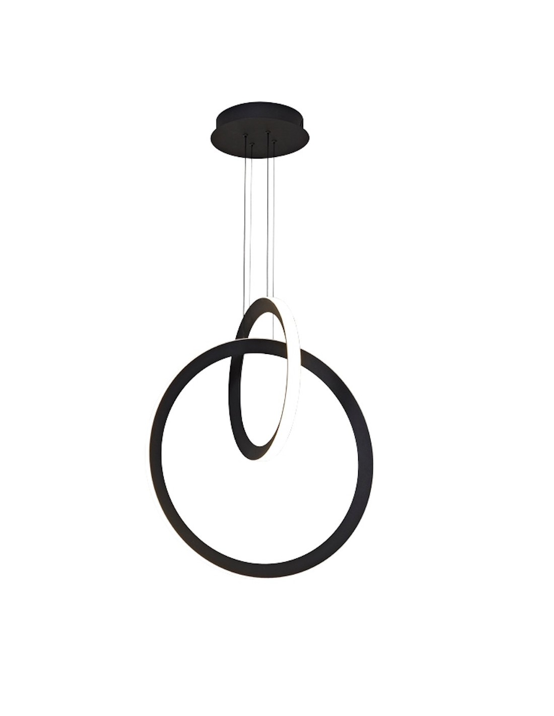 La lámpara colgante, Kitesurf, tiene un carácter moderno con un diseño perfectamente logrado. Claramente destacan dos aros con lineas cepilladas en blanco o negro. El difusor de este colgante de techo se encuentra situado en la parte exterior de la luminaria.