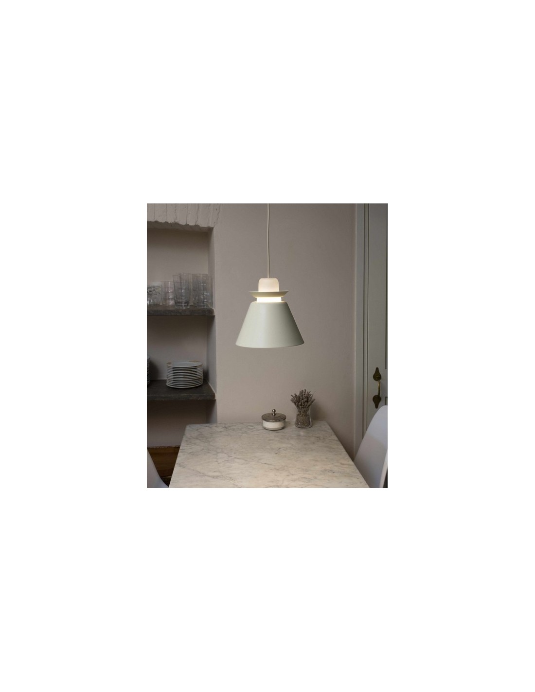 NAOS es una colección de Lámparas colgantes diseñada por Alex&MANEL LLUSCÀ. De estilo moderno e industrial, la serie cuenta con dos tamaños. La luz se proyecta tanto a través de la pantalla, como desde el difusor de cristal opal, situado en la parte superior. Entre la pantalla y el difusor se encuentra un aro metálico decorativo, que viene incluido en los acabados blanco y terracota.