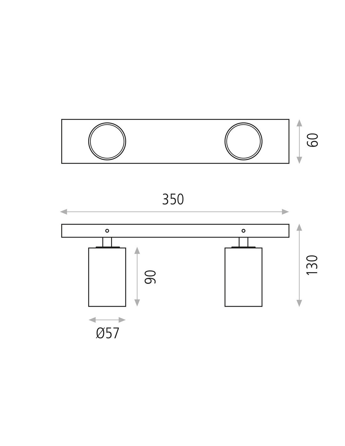 Sus medidas varían en función del modelo: el que cuenta con dos focos tiene 35 cm de largo, 6 cm de ancho y 13 cm de alto, con un peso de 0,68 Kg; el más grande, que posee tres focos, tiene 60 cm de largo, 6 cm de ancho y 13 cm de alto, mientras que su peso es de 1,02 Kg.