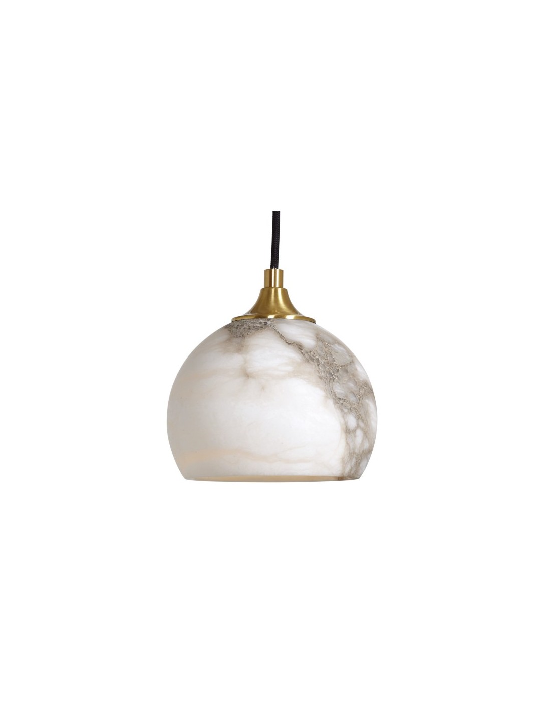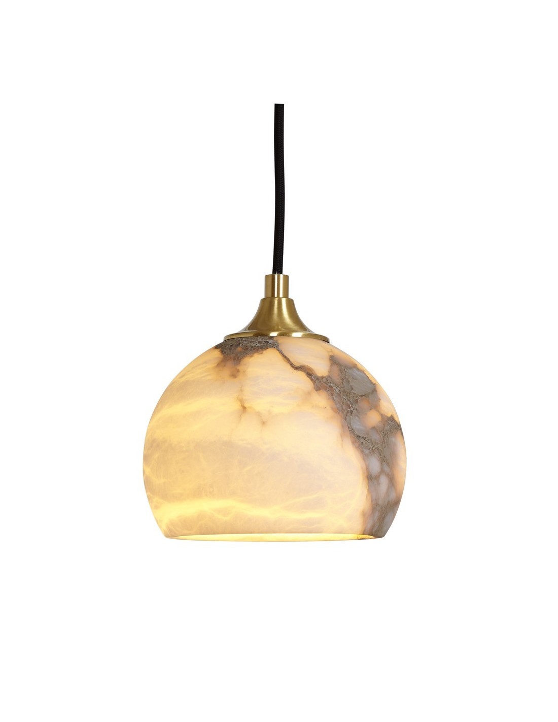 Se trata de una lámpara colgante que llama la atención gracias a su pantalla elaborada de alabastro, un preciado mineral que se extrae en España. De tacto suave, esta luminaria se convierte en una esfera mágica cuando se enciende e ilumina el espacio.