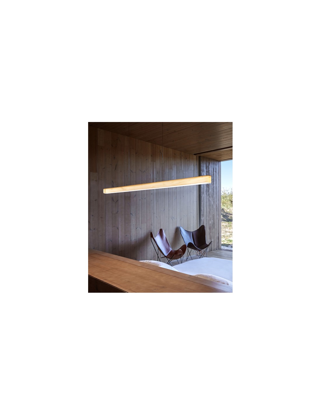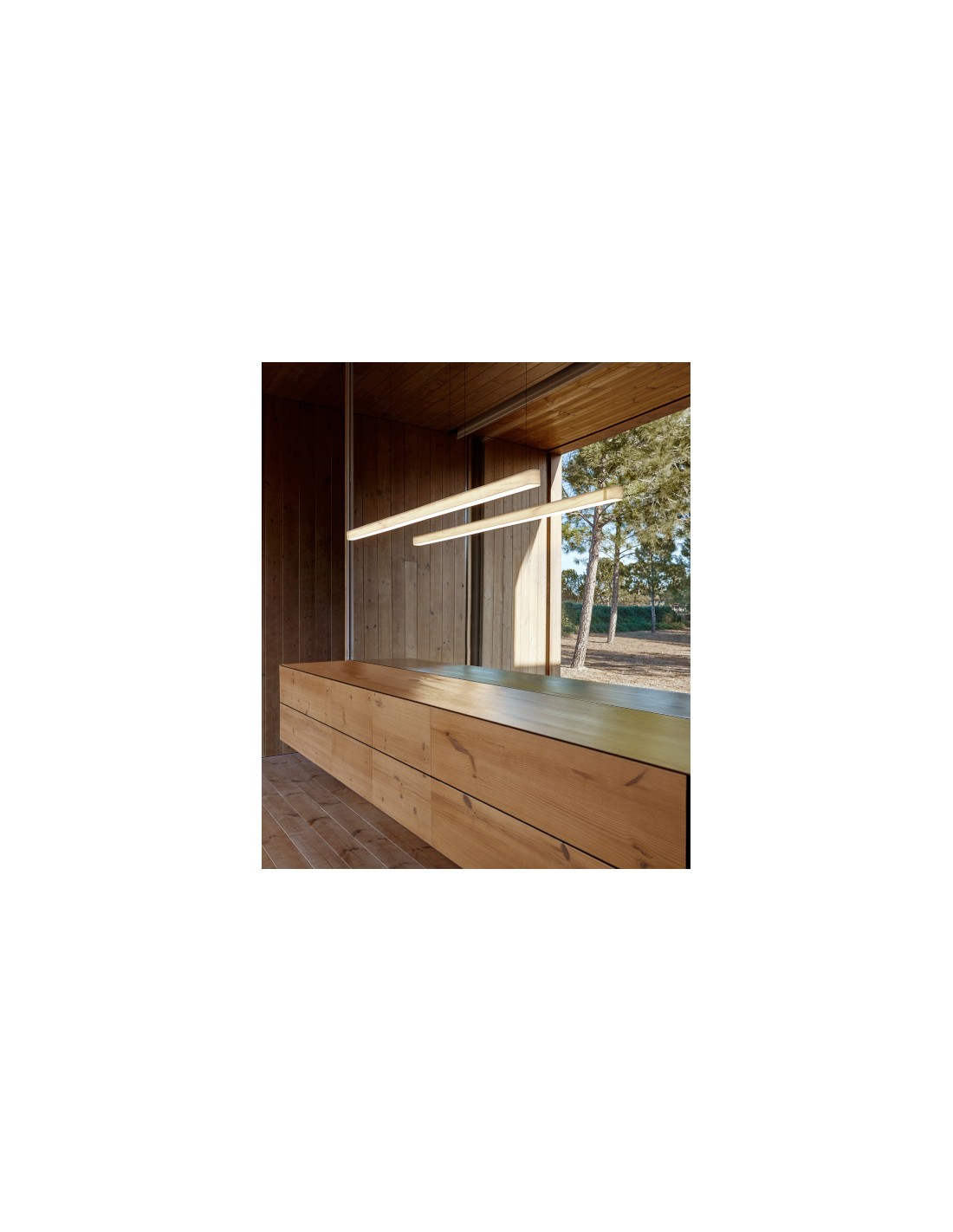 - Lámpara Colgante I Line - LZF - Lámpara de suspensión LED elegante de línea arquitectónica y minimalista, chapa de madera