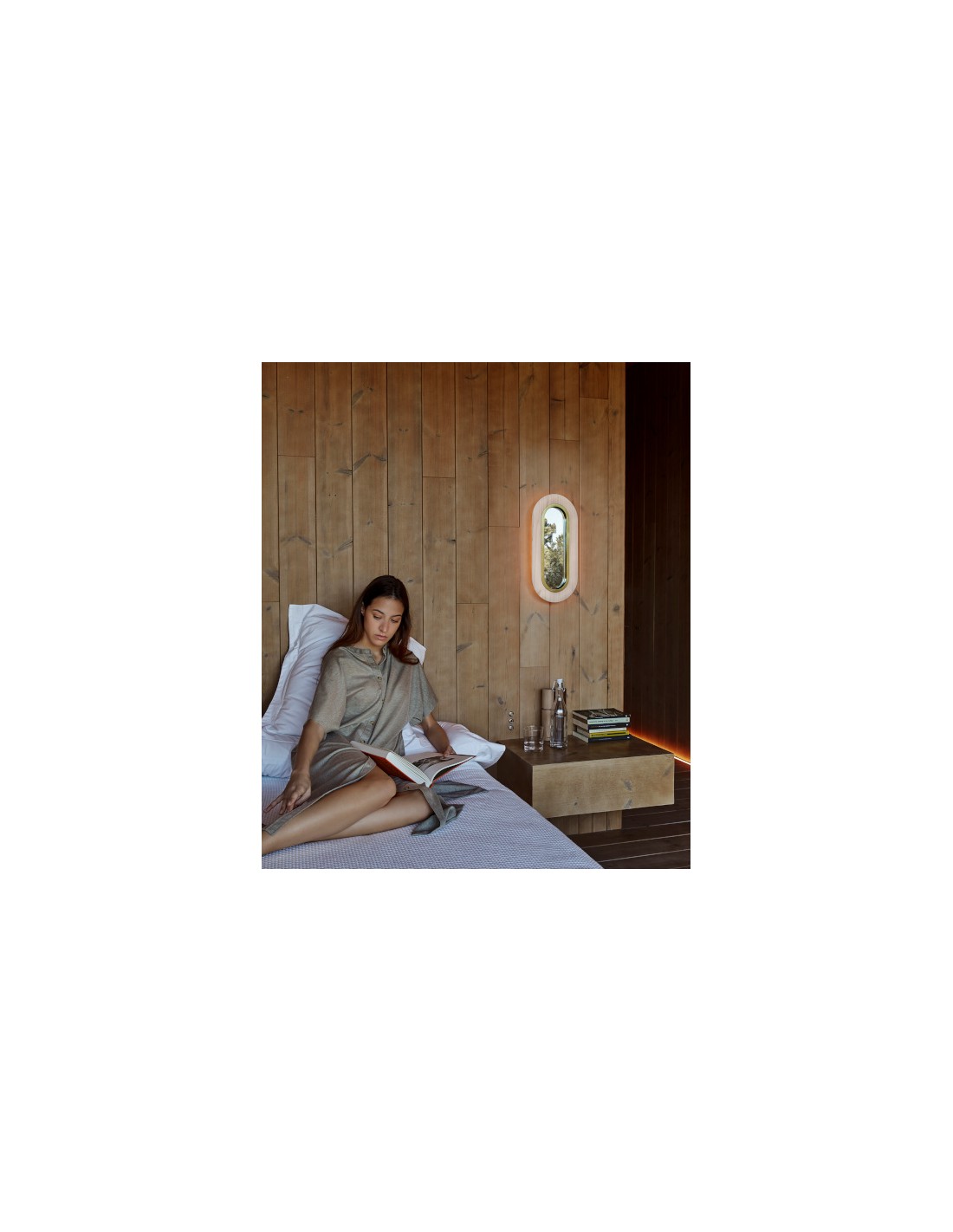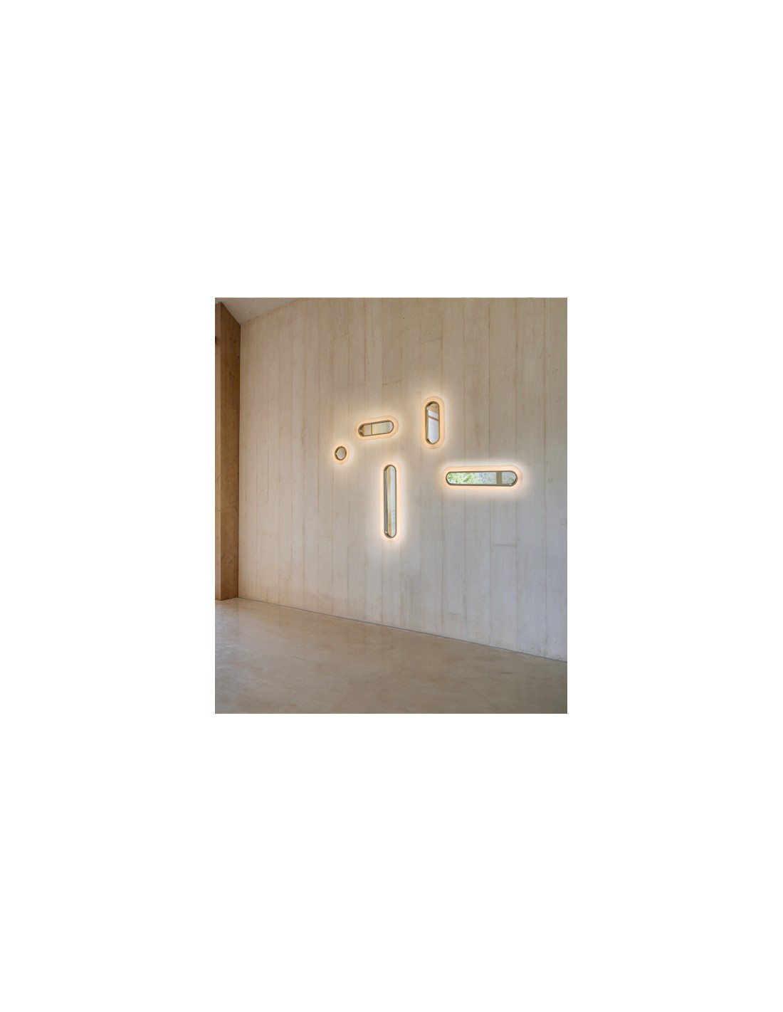 Diseñado por MUT, Lens disfruta de líneas fluidas sin bordes duros. Su sombra de chapa de madera rodea una circunferencia ovalada de luz, y en su centro hay un claro vacío. La pantalla está conectada a una base metálica delgada que viene en cuatro colores, oro, blanco, negro o cobre. Disponible como lámpara de mesa, de pie y de pared, Lens tiene dos tipos de pantalla: circular y elíptica. La versión elíptica tiene dos tamaños: una elipse alargada y una elipse truncada. La delgada pared de Lens, a una profundidad de sólo 10 cm, tiene un llamativo espejo en lugar del vacío central. Libre de interrupciones, la luz radiante de Lens traza el aire. Perfectamente simétrica y elegante, suave y relajante, Lens es una luminaria que llama a la calma.