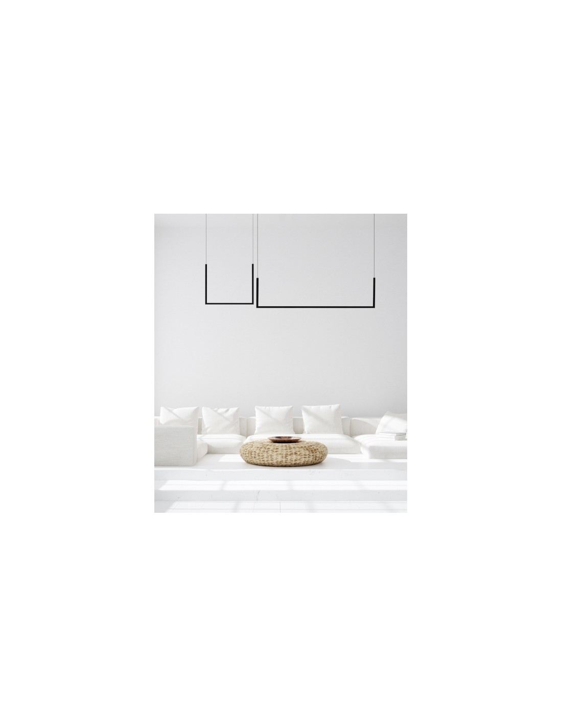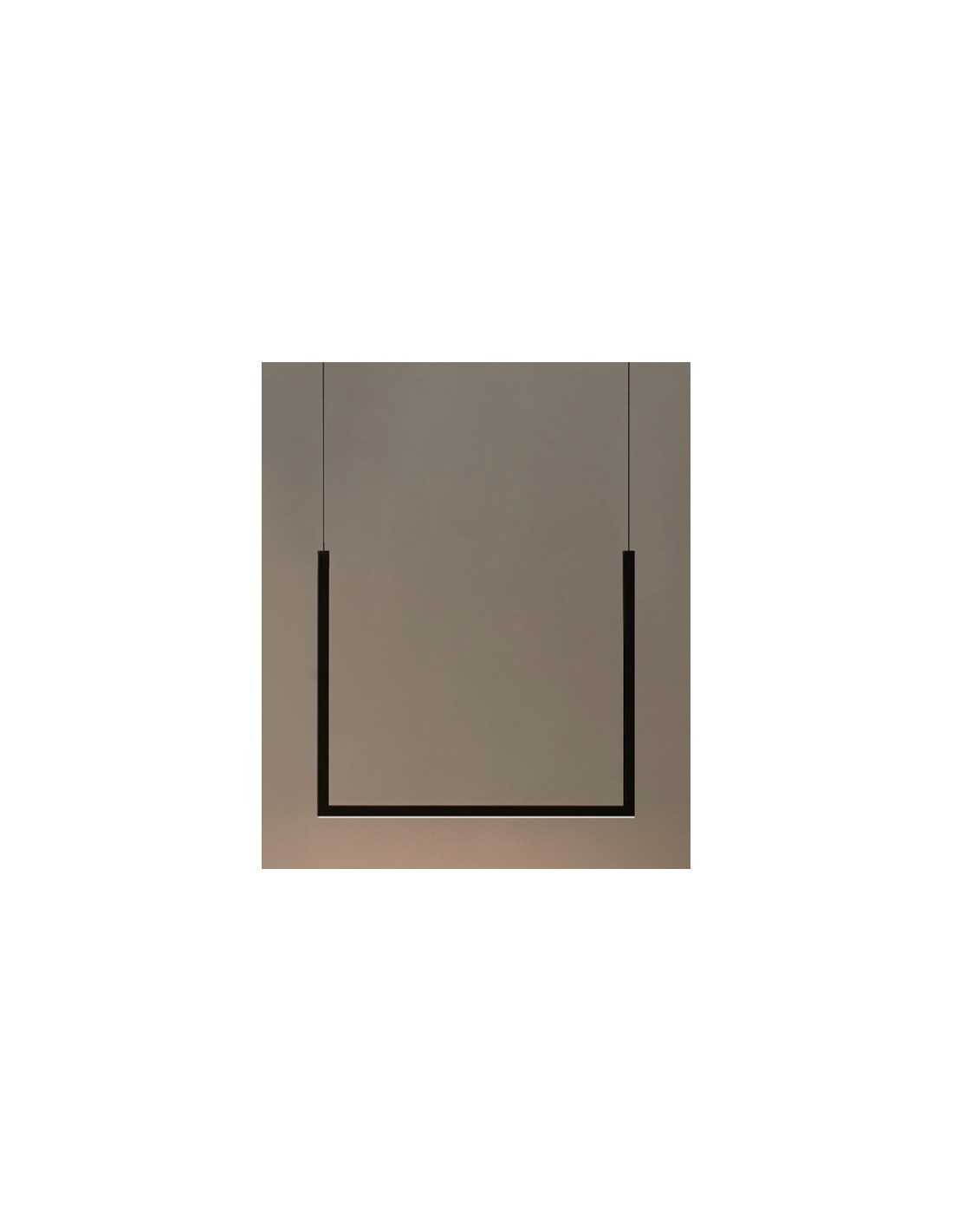 Es una lámpara de techo confeccionada mediante metal y con el acabado negro en la que predominan el minimalismo y las líneas rectas para lograr limpieza y sencillez en los espacios.
