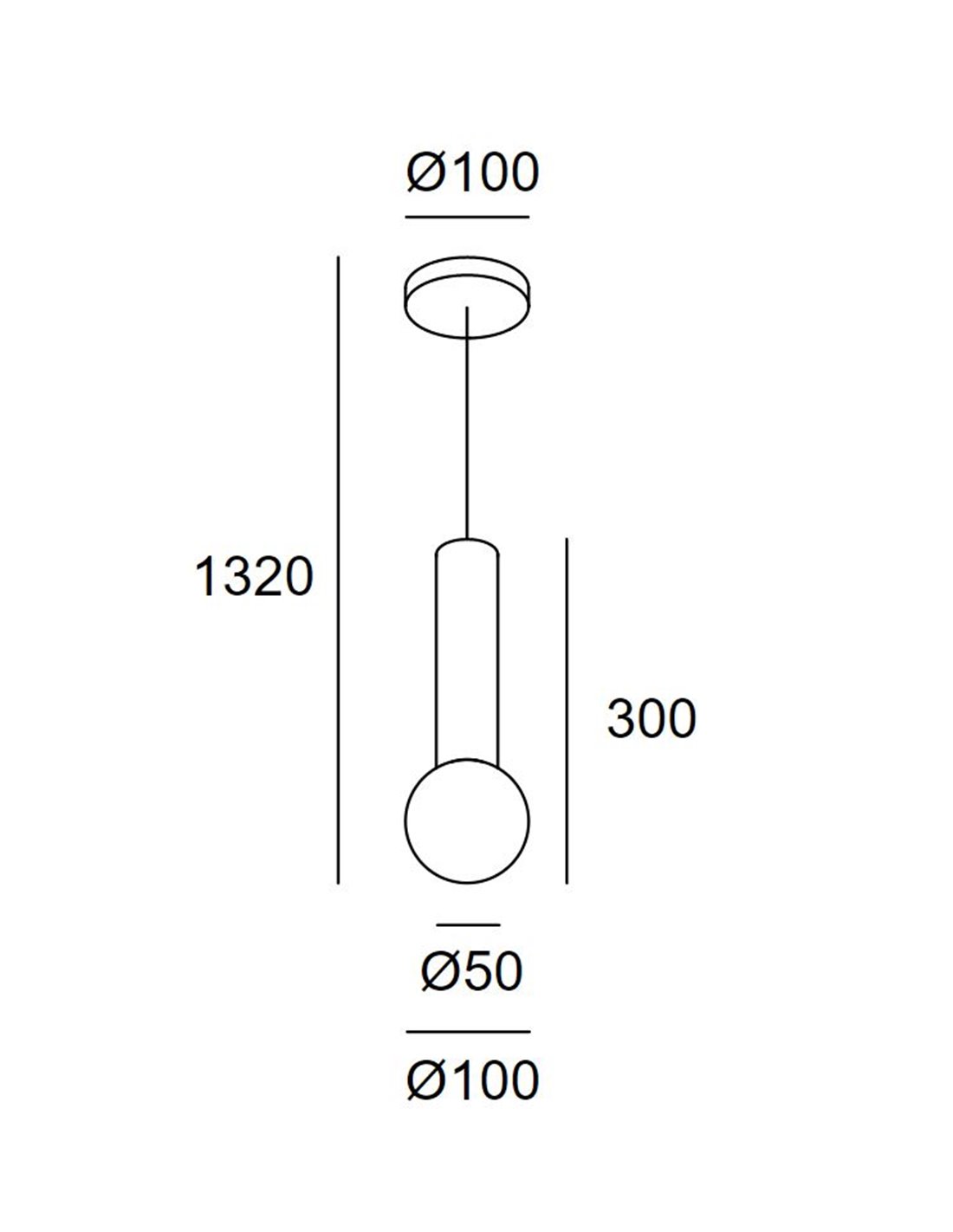 El tamaño de Mist en versión colgante es de 132 cm de altura total (30 cm sin contar cable y florón), diámetro de 10 cm y peso de 0.78 Kg.