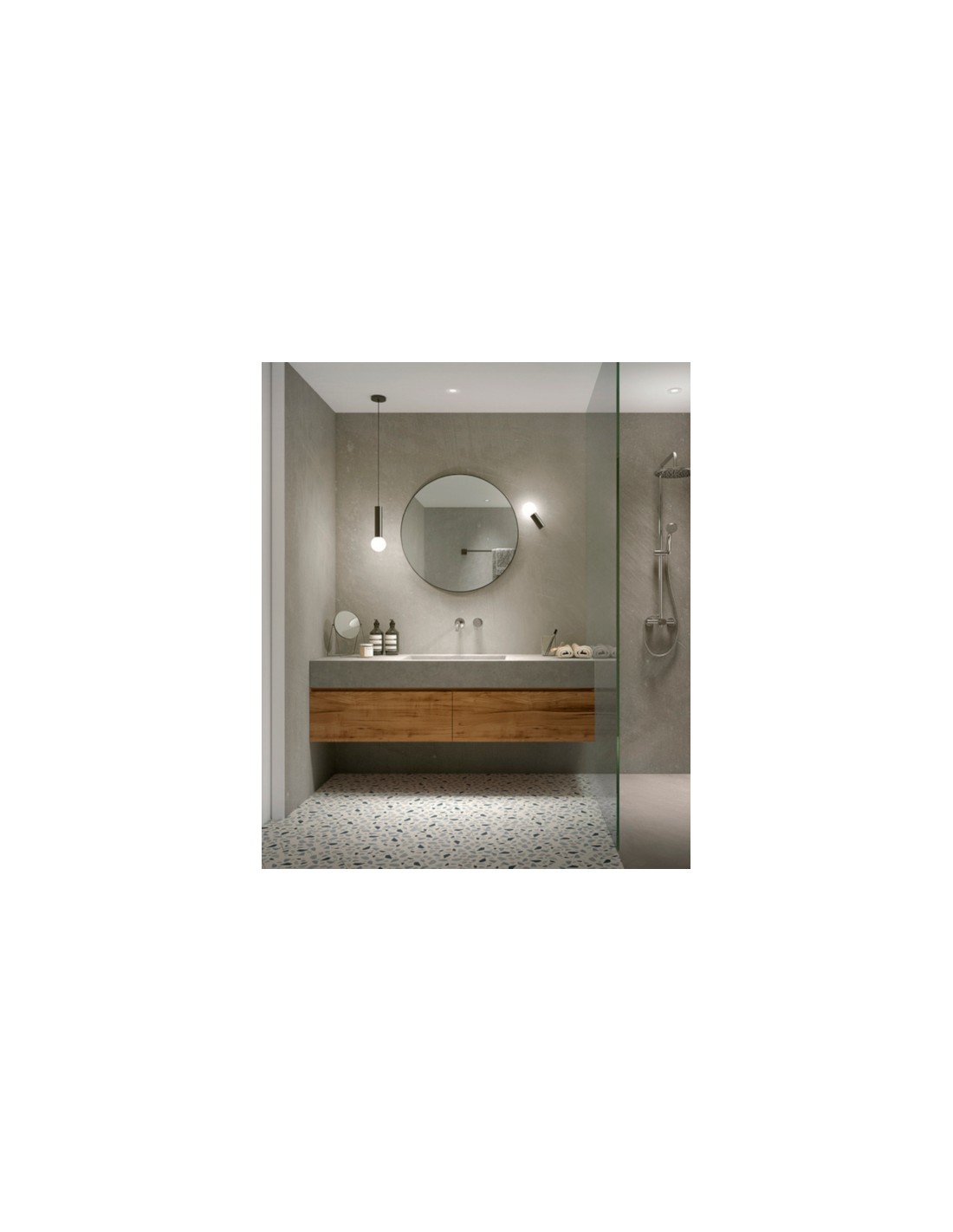 En este caso estamos ante un aplique de pared de una sola bombilla que posee protección IP 44, lo que convierte a este producto en adecuado para su uso como lámpara de baño. Se puede adquirir en los acabados negro y cromo.