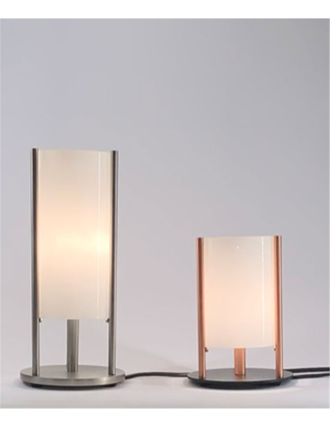 Noa es una lámpara de mesa decorativa que se caracteriza por una pantalla cilíndrica realizada en cristal blanco, rodeada por un armazón hecho de acero, disponible en varios acabados. Se trata de una elegante lámpara de mesa que sirve perfectamente como iluminación ambiental, además de proporcionar un cierto acento en nuestra estancia. Es perfecta como lámpara de mesa en salón o pasillo encima de un mueble auxiliar.