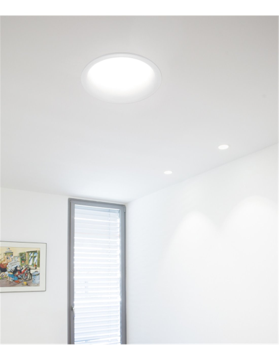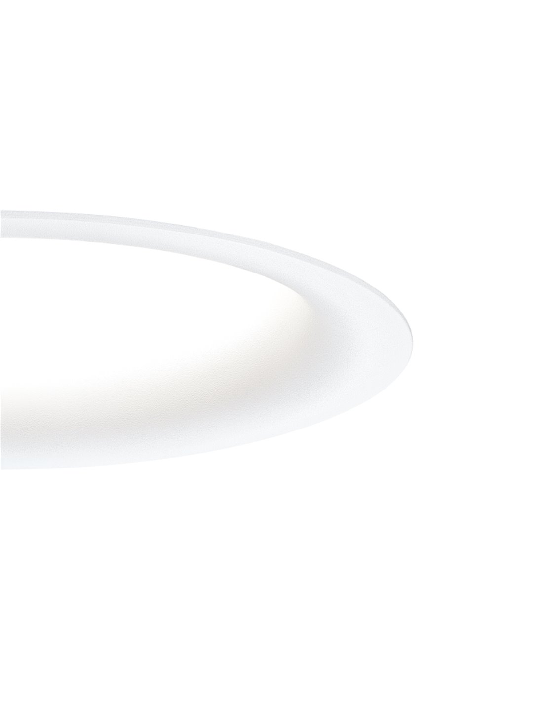 Con la luz encendida, la iluminación de Drop genera un efecto que borra con su claridad los limites de la luminaria. El efecto de alumbrado de este empotrable se asemeja al de una claraboya natural. Se trata de la versión más grande de la colección Drop, compuesta por lámparas empotrables blancas.