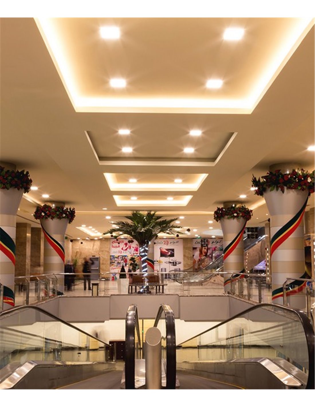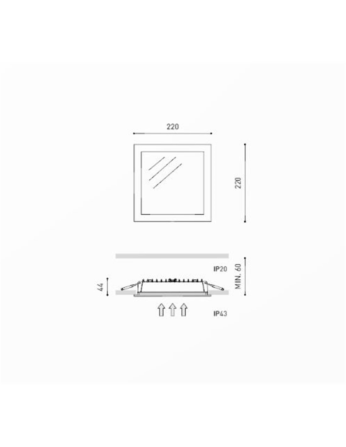 Downlight de empotramiento cuadrado. La estrechez y reducida anchura de su marco son el sello diferenciador de esta elegante luminaria.