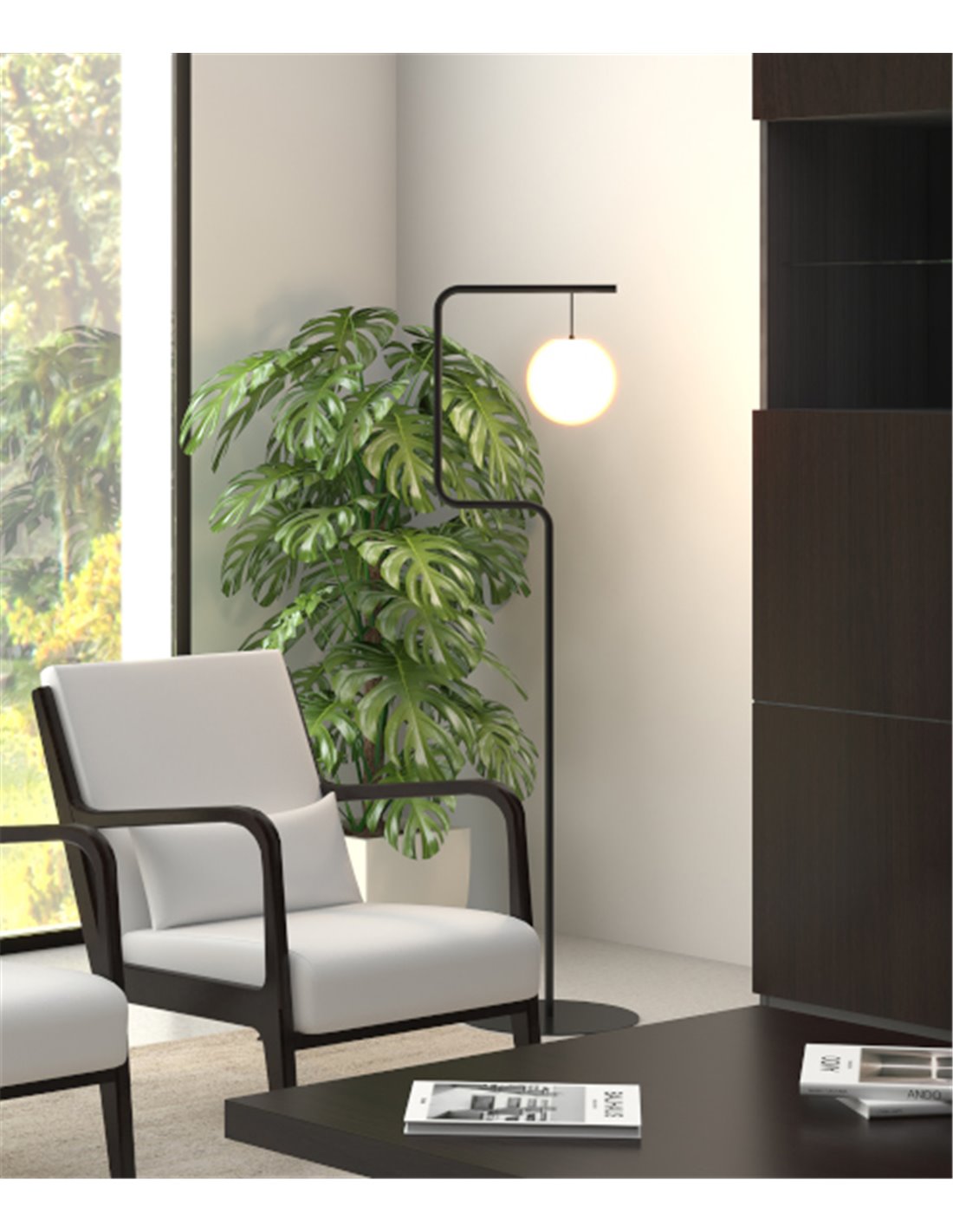 Lámpara de pie Zig perfecta para el salón, diseño minimalista tipo bola, acabado negro.