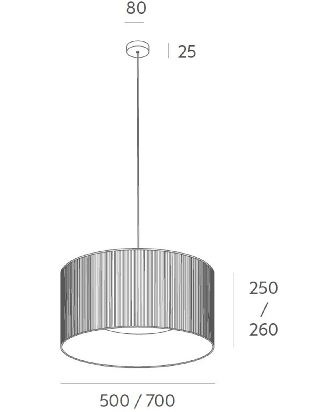 Lámpara colgante In Translucent, pantalla plisada, disponible en dos tamaños: 50/70 cm.