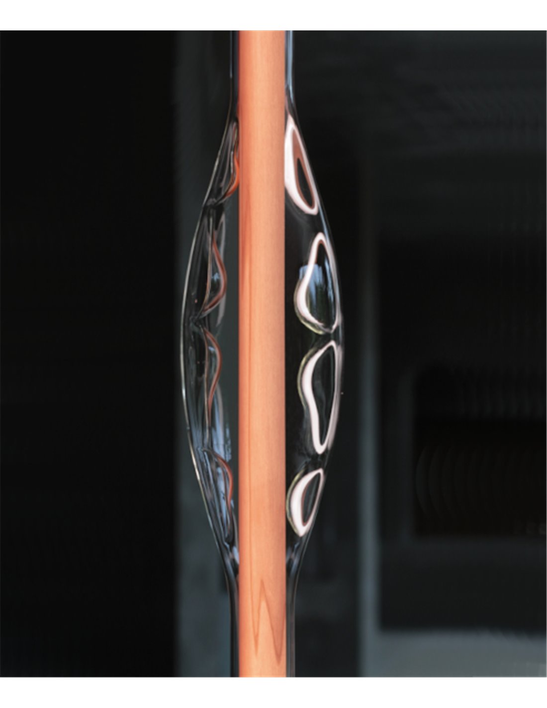 Lámpara colgante Dune Vertical de madera natural y vidrio soplado, LED regulable.