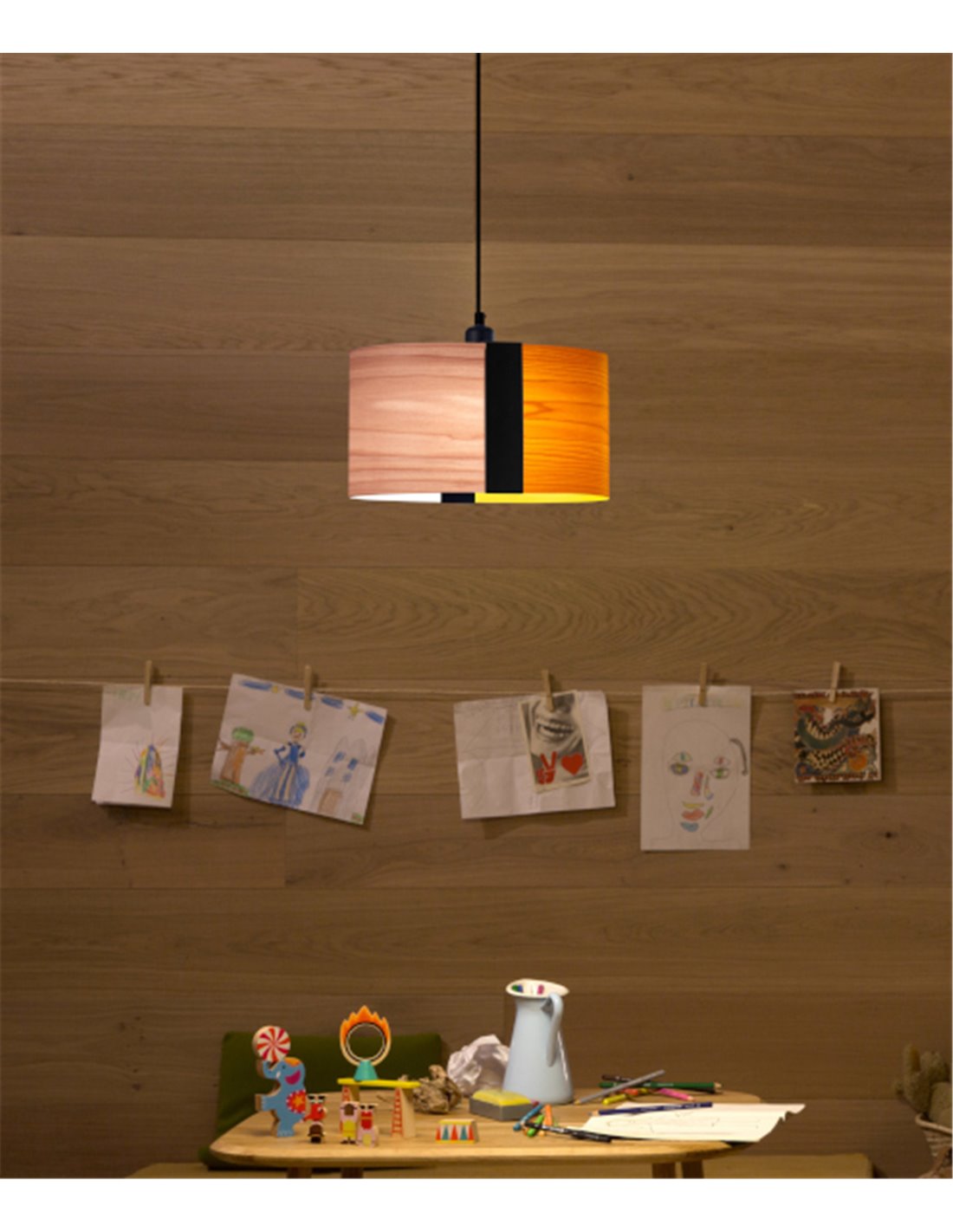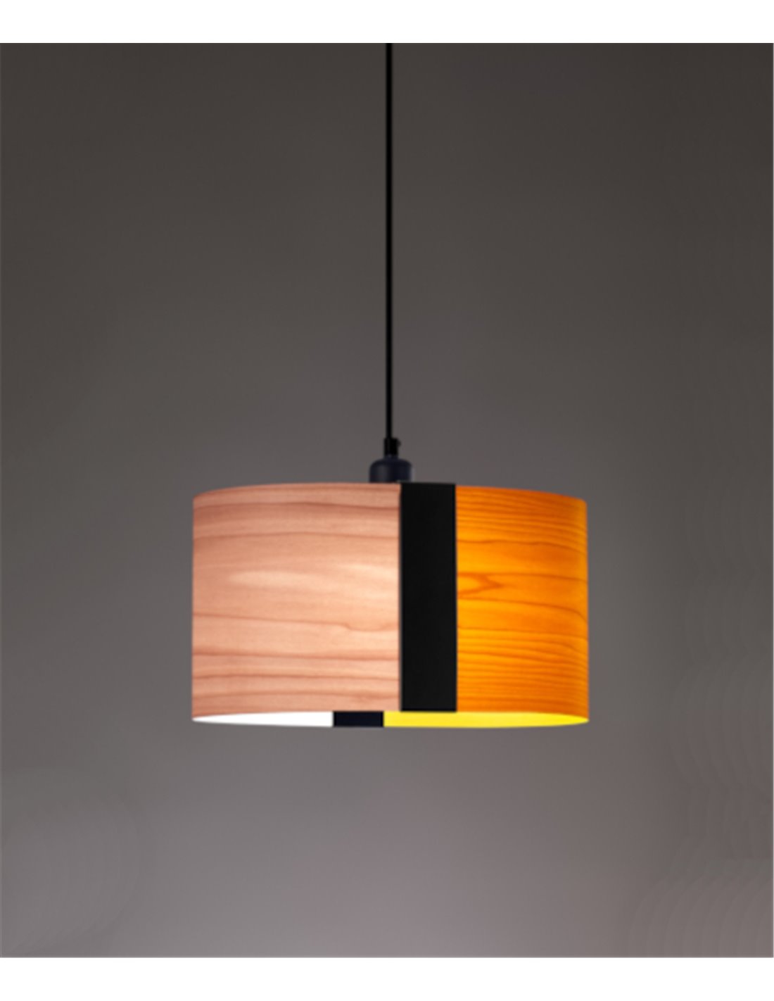 Lámpara colgante Sushi con pantalla de madera natural en varios colores, diámetro: 36 cm.