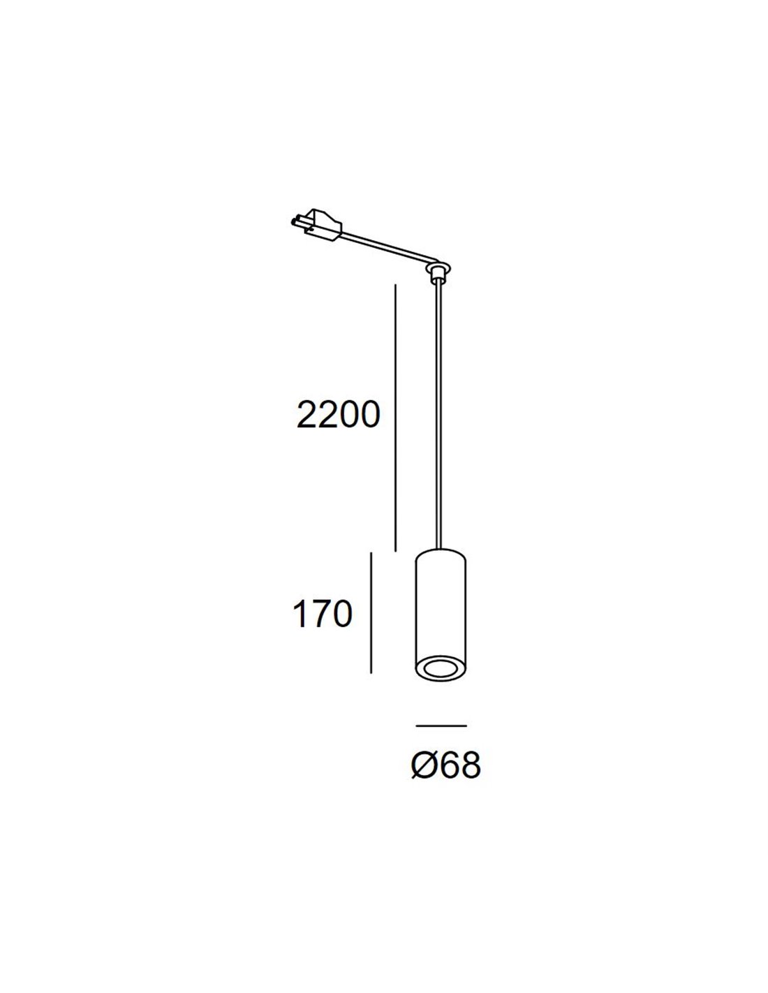 Lámpara colgante Pipe para carril Deltatrack, lámapra de techo tipo tubo, disponible en varias opciones, Incluye 2 ganchos.