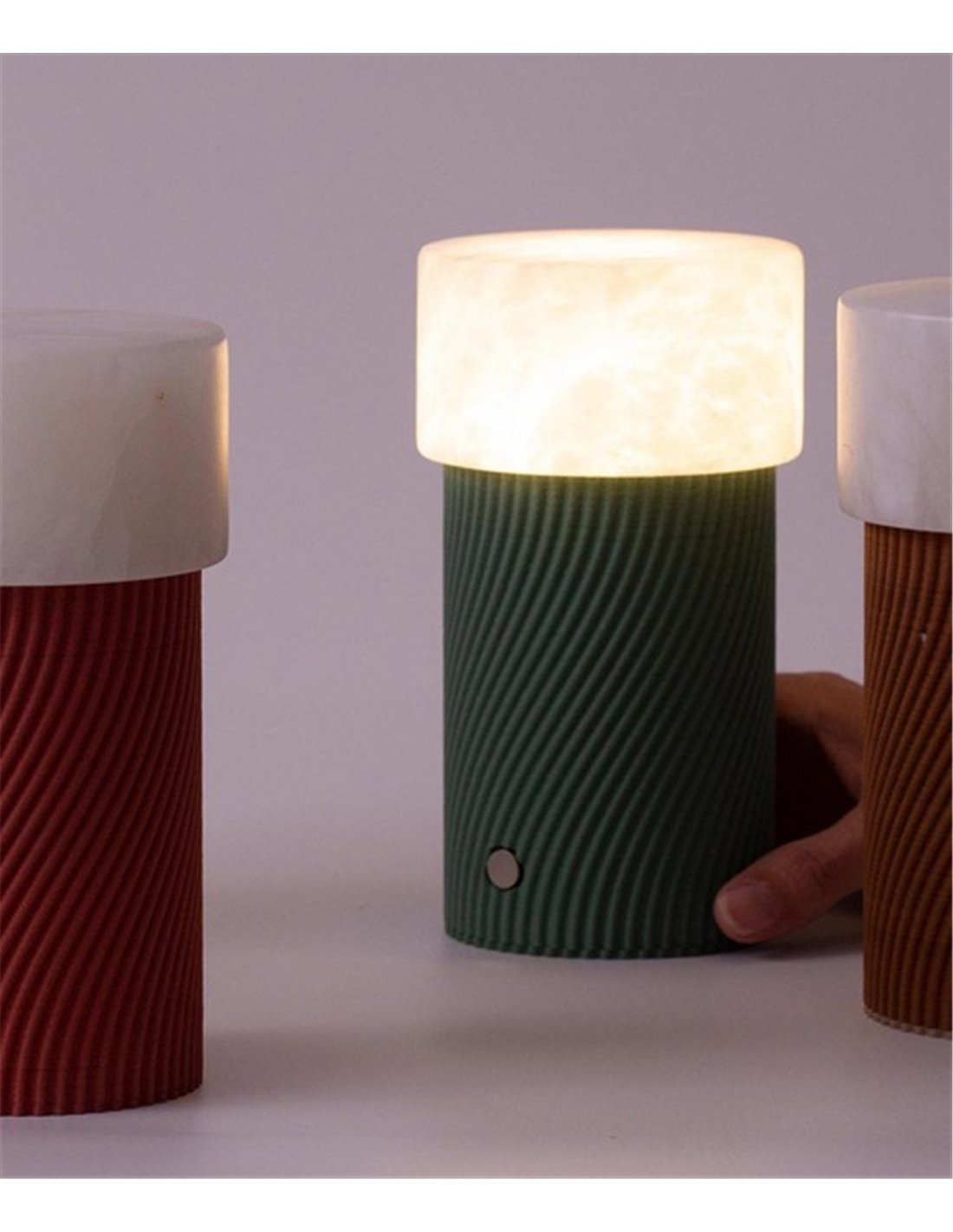 Te presentamos nuestra innovadora lámpara, que cuenta con una elegante parte superior de alabastro, una batería portátil y una base eco-amigable impresa en 3D hecha de un material inteligente. Nuestra base está compuesta de un 40% de materiales de madera y un 60% de polímero, lo que le confiere un aroma natural a madera y la hace duradera y reciclable. Disponible en seis colores inspirados en la naturaleza, Rizzo es la solución perfecta para cualquier estilo de decoración.