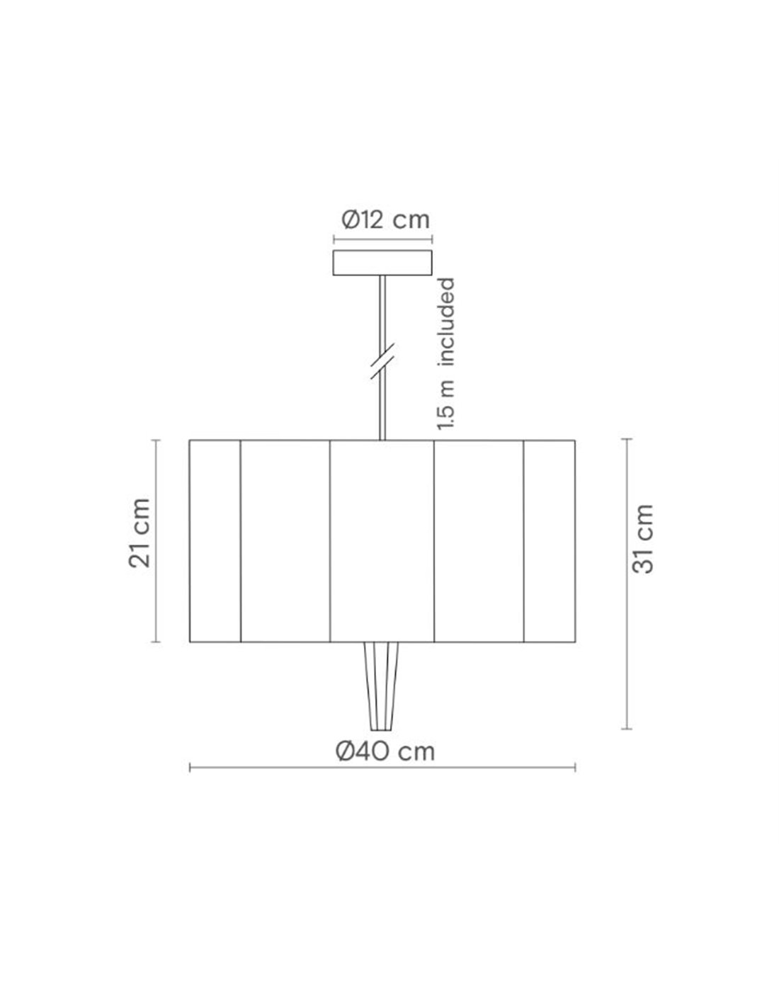 Rain tiene un diámetro de 40 cm, lo que la hace adecuada para iluminar áreas de tamaño mediano con estilo y sofisticación.