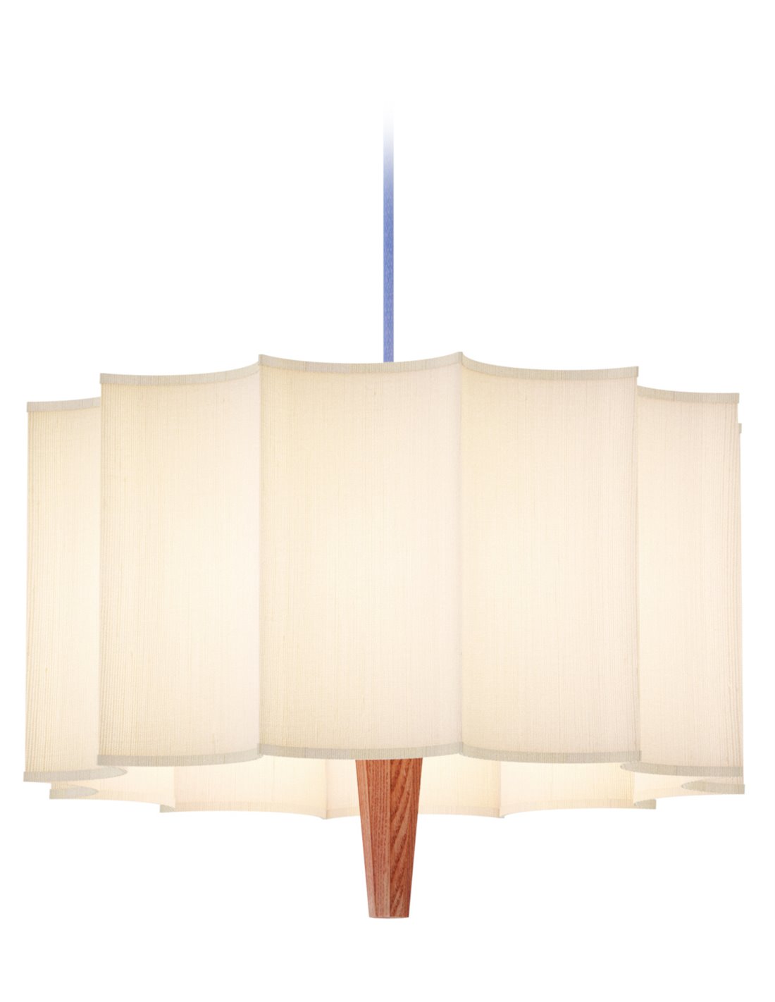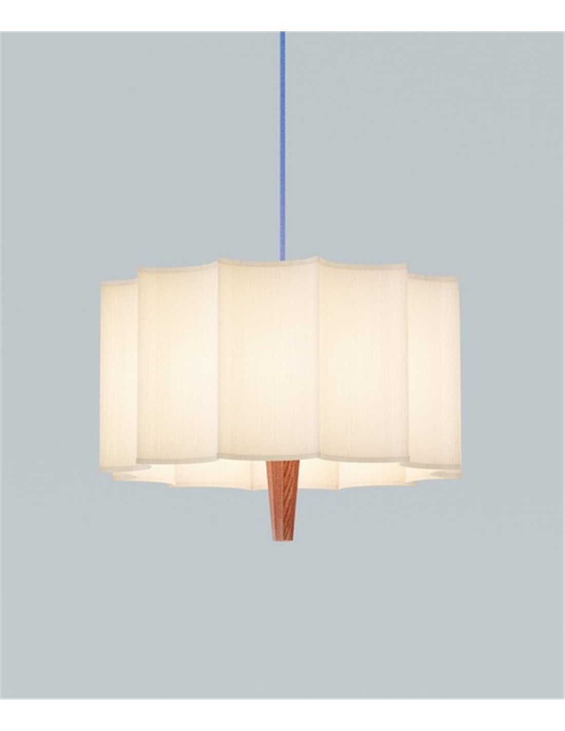 Sobre lámpara colgante Rain de Robin; pantalla de tela y detalle de madera, diámetro: 40 cm