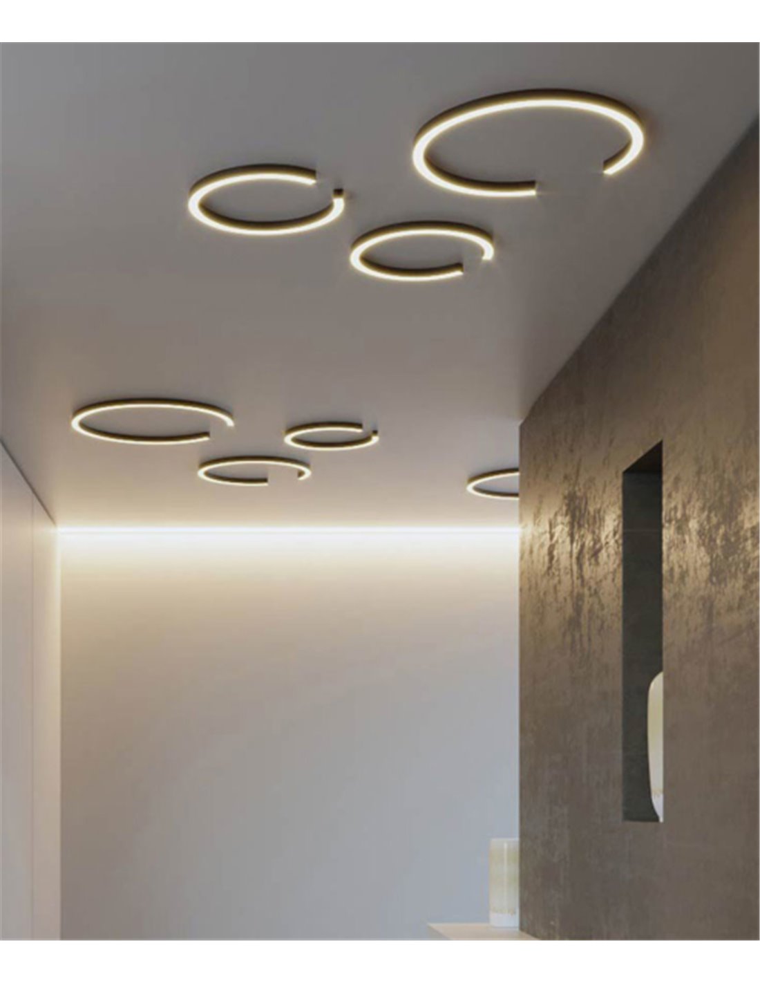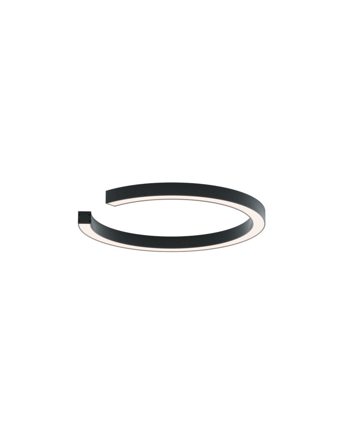 La lámpara Roberta está realizada en perfiles de aluminio de alta durabilidad, disponible en tres tamaños: 50 cm, 65 cm y 80 cm, lo que la convierte en una opción versátil para complementar diversos estilos, ya sean modernos, industriales o minimalistas. Con su diseño de plafón de techo extra fino, de solo 3.5 cm de altura en todos los tamaños, presenta un formato redondo con una abertura que separa los extremos, presentando una estética original y atractiva.
