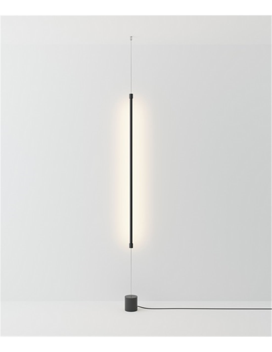 René es un híbrido entre una lámpara de pie y una lámpara colgante con la conveniencia de una fácil instalación debido al cable y enchufe preconectados a su base. Es un dispositivo de iluminación LED contemporáneo diseñado para agregar un efecto gráfico minimalista pero visualmente impactante a espacios comerciales o residenciales con su iluminación lateral indirecta. Tiene un punto de sujeción en el techo y presenta un contrapeso en el piso que agrega estabilidad y personalidad a su diseño limpio. El diseño versátil de René lo hace adecuado para una variedad de espacios, desde salas de estar y dormitorios modernos hasta bares y restaurantes de moda.