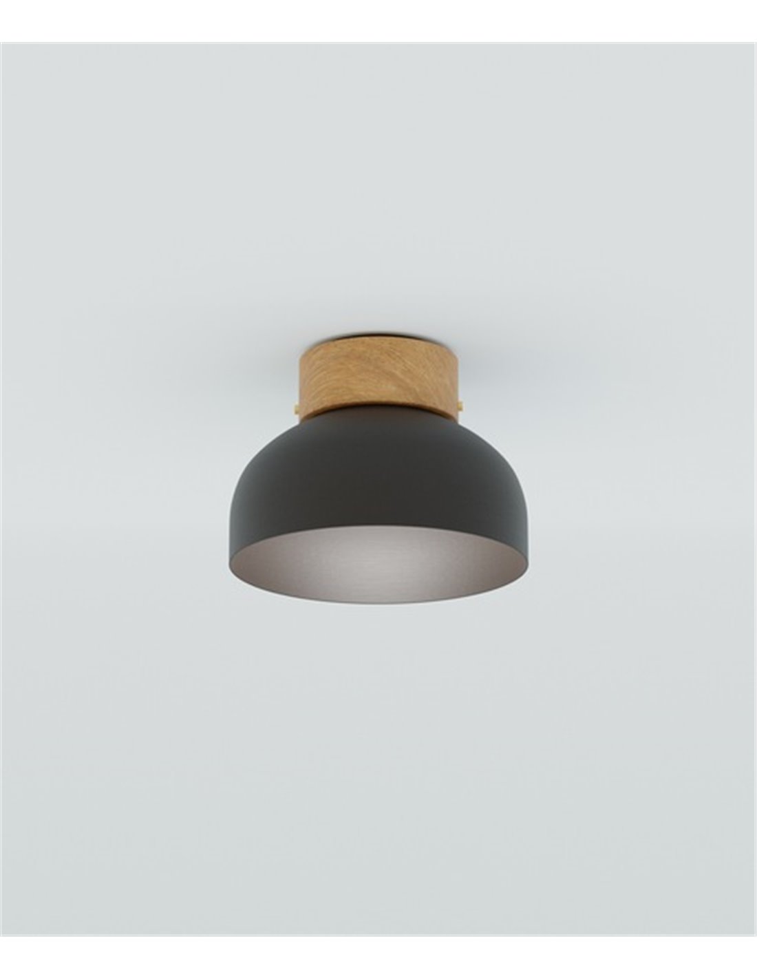 Plafón de techo Reiko – Robin – Lámpara redonda de metal y madera de fresno, Ø 21 cm