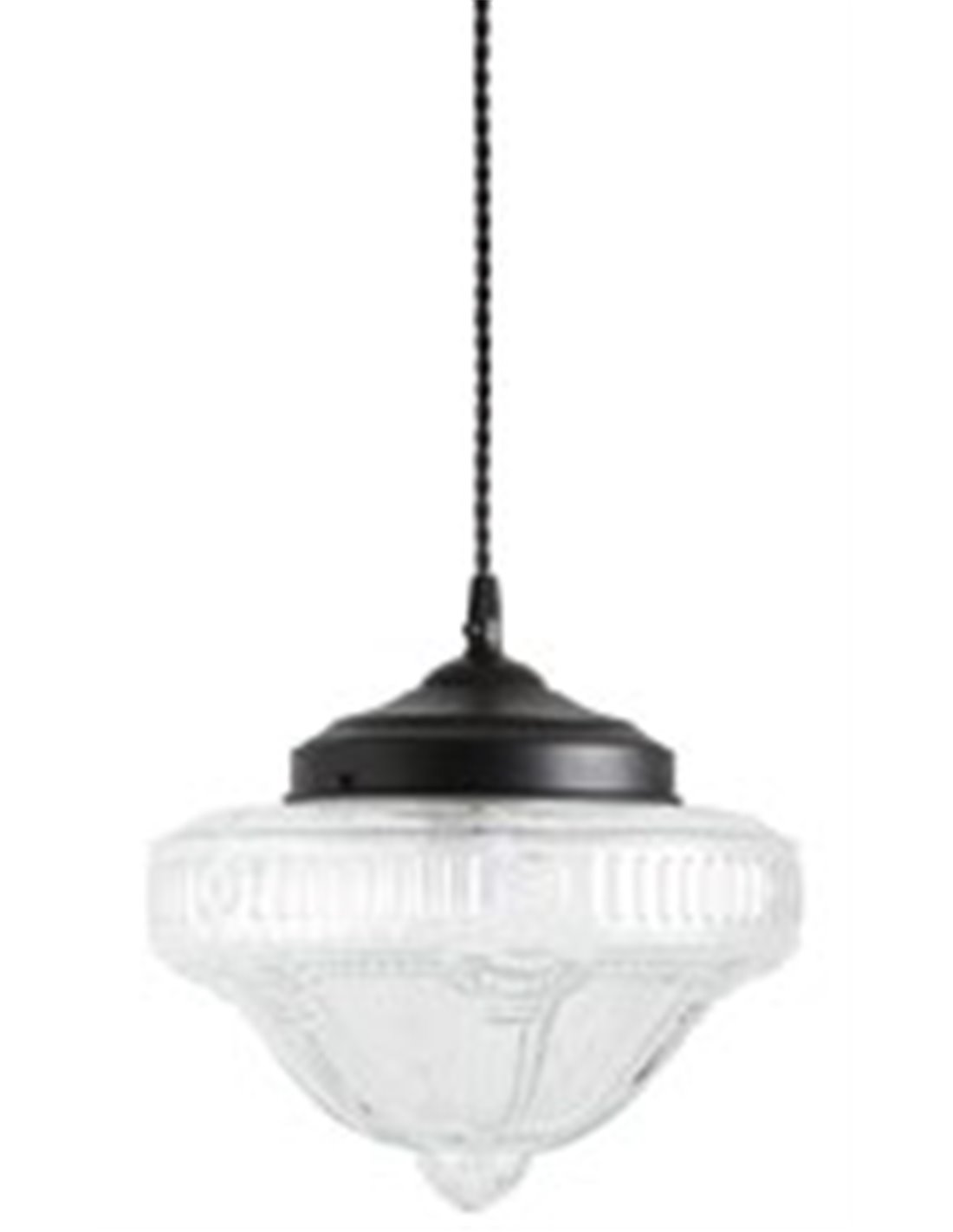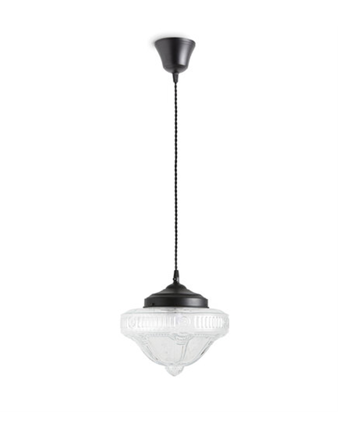 Laffie es un colgante de estilo retro con tulipa de cristal grande en mate o en transparente y cable trenzado. Muy funcional y estéticamente a la última.
