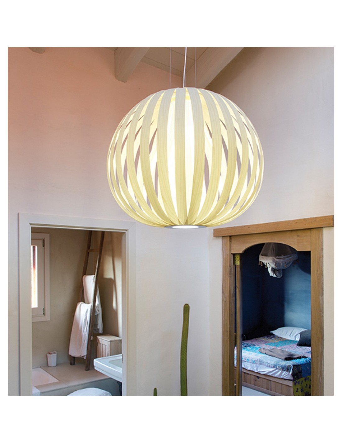 - Lámpara Colgante Poppy - LZF - Lámpara forma de esfera con tiras de madera