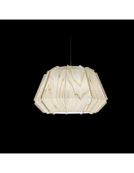 Para fabricarlas, la chapa de madera está cosida al más puro estilo de costura tradicional: se dibuja un patrón, se marca la pieza y se corta. Así cada parte. Para completar la pieza se usa un dobladillo que es visible y que permite irradiar la luz a través.