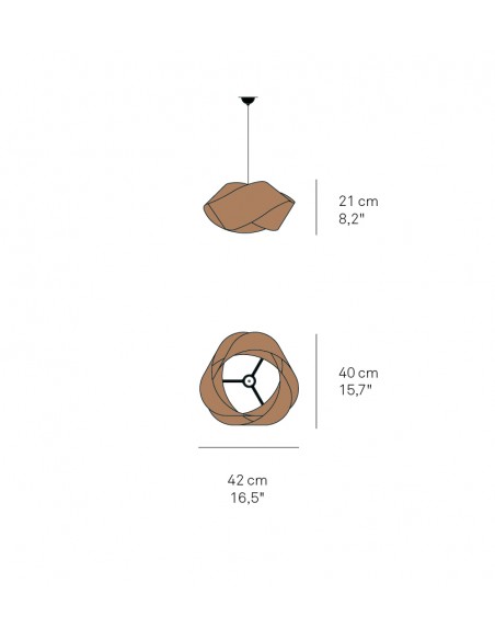 El primer Baron Bourchier nació varios cientos de años antes de poder disfrutar de la lámpara colgante NUT en su oscuro castillo, lo cual es una pena, porque el diseño nudoso de NUT está basado en el escudo de armas de la familia Bourchier. Por fortuna, nosotros vivimos una época en la que NUT puede adornar nuestros pequeños castillos; un poderoso símbolo de clase exquisita. Se lo agradecemos a los brillantes Mariví Calvo y Ray Power por su valor y visión. Está luminaria de la empresa española LZF está disponible en once diferentes colores de chapa de madera: amarillo, azul, blanco marfil, cerezo natural, chocolate, gris, haya natural, naranja, rojo, rosa y turquesa. Sus medidas son 42 cm x 40 cm x 21 cm (ancho x largo x alto) y la fuente de iluminación recomendada es: E27 CFL Globe 1 x 23 W max. (no incluida).