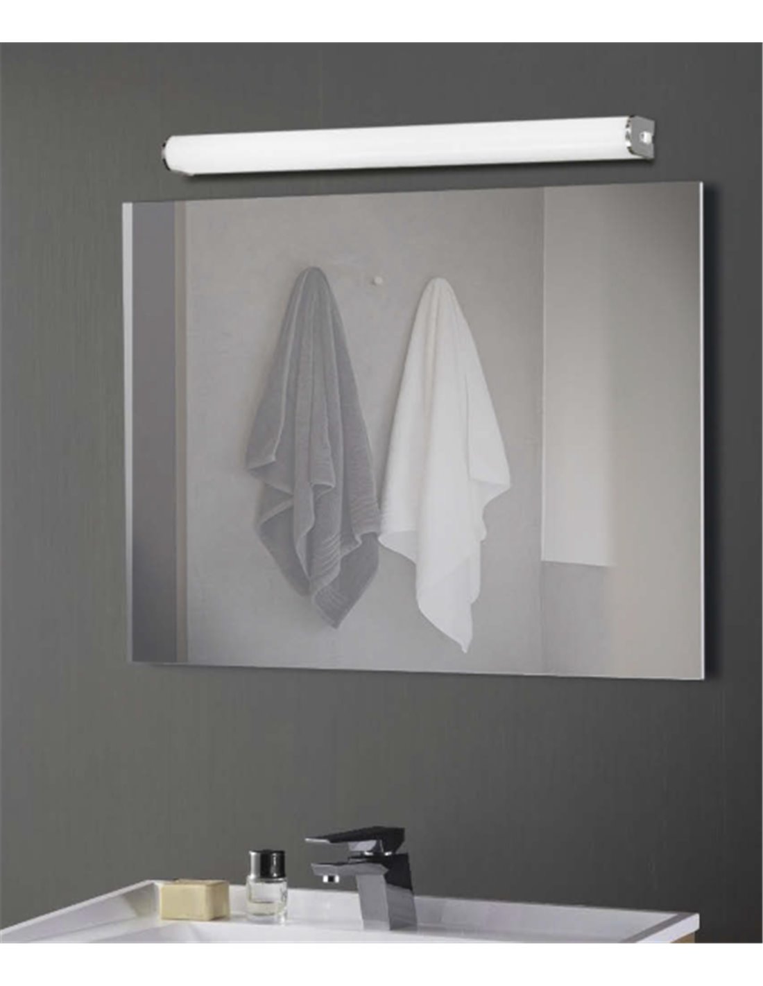 Loira es un aplique muy indicado para entornos húmedos, siendo una elección especialmente recomendada para espacios como el baño debido a su clasificación de protección IP44, que lo protege contra la entrada de agua y vapor. Su diseño alargado lo convierte en una opción perfecta para ser instalado sobre un espejo.