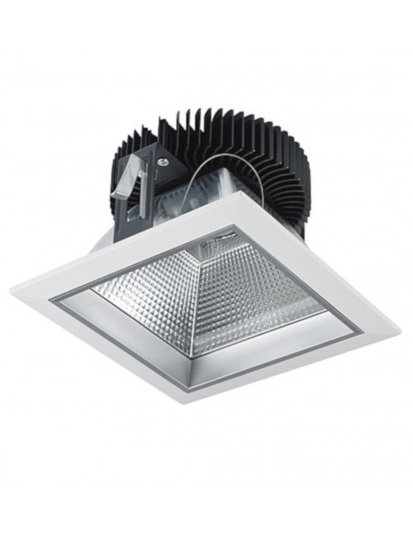 Pandora es un empotrable de techo de forma cuadrada que, debido a la gama de características técnicas y a la personalización disponible, es extremadamente versátil y puede utilizarse en cualquier zona del interior de un edificio. Su cuerpo y marco están fabricados en aluminio, y el difusor es de cristal templado transparente. Su fuente de luz integrada es un sistema de tecnología LED que ofrece una vida útil de 50.000 horas, y la temperatura de color puede seleccionarse entre 3000K (luz cálida adecuada para zonas de relax) o 4000K (luz neutra similar a la natural y adecuada para zonas de paso). Tiene protección IP 44 que la hace resistente a la entrada de agua y polvo, lo que significa que también puede utilizarse como luz de baño si se desea.