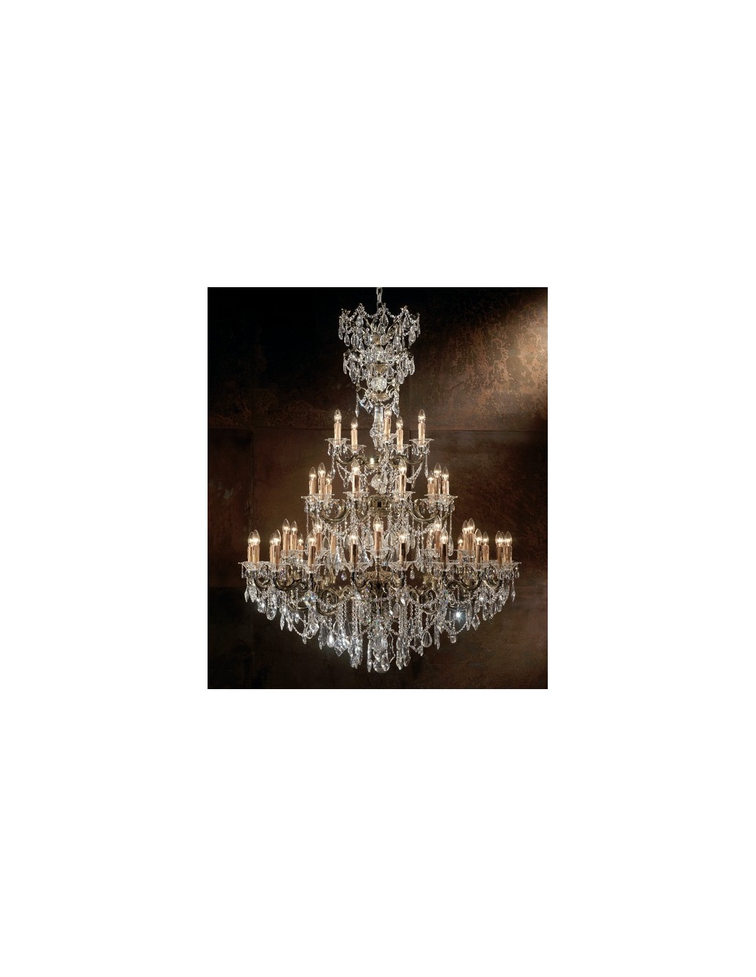 Lámpara de metal de latón con cristales de Asfour y Bohemia de primera calidad, adaptada a la tecnología LED y cumpliendo normativa CE, CCC, SASO, CU TR y CoC. El cristal Asfour es sinónimo de calidad, de excelente pureza, brillo y resistencia, con una talla perfecta que combina el diseño con la innovación.