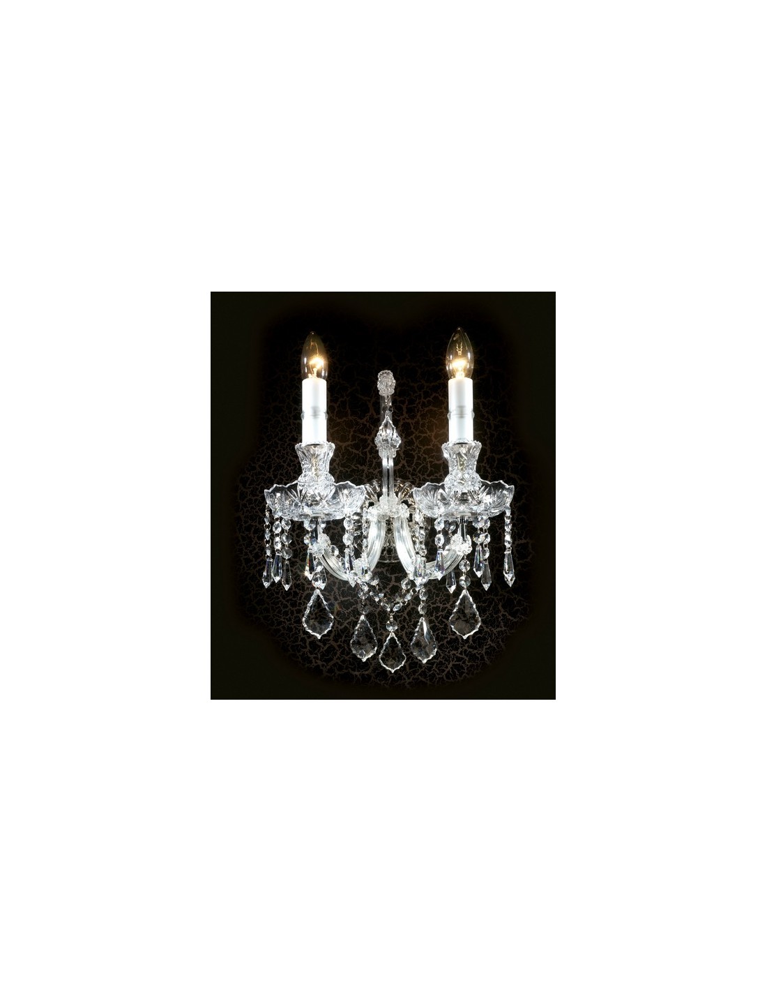 Aplique de cristal tipo Mª Teresa con cristal Asfour de primera calidad, adaptado a la tecnología LED y cumpliendo normativa CE, CCC, SASO, CU TR y CoC. El cristal Asfour es sinónimo de calidad, de excelente pureza, brillo y resisencia, con una talla perfecta que combina el diseño con la innovación.