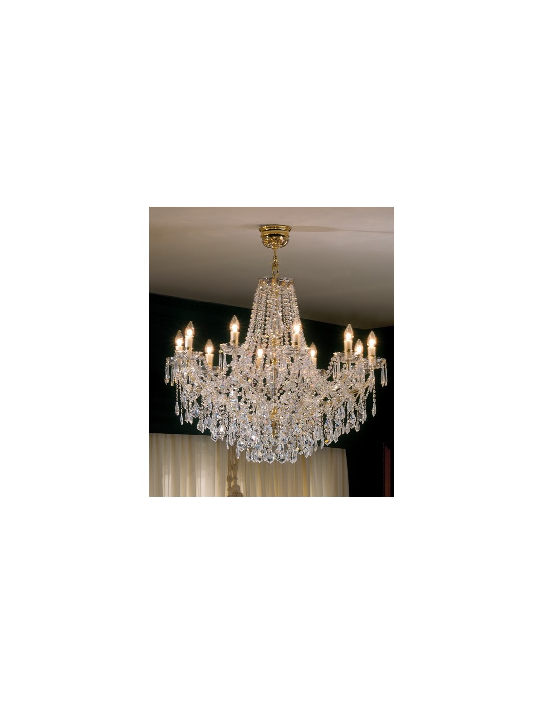 Dalia es el colgante perfecto para aquellos que buscan dar ese toque de suntuosidad y grandeza a los espacios. Está realizada con cristal de alta claidad y se puede elegir entre tres tipos: asfour, spectra swarovski y strass swarovski. Su diátreo es de 75 cm. Se recomienda el uso de bombillas led (no incuidas).