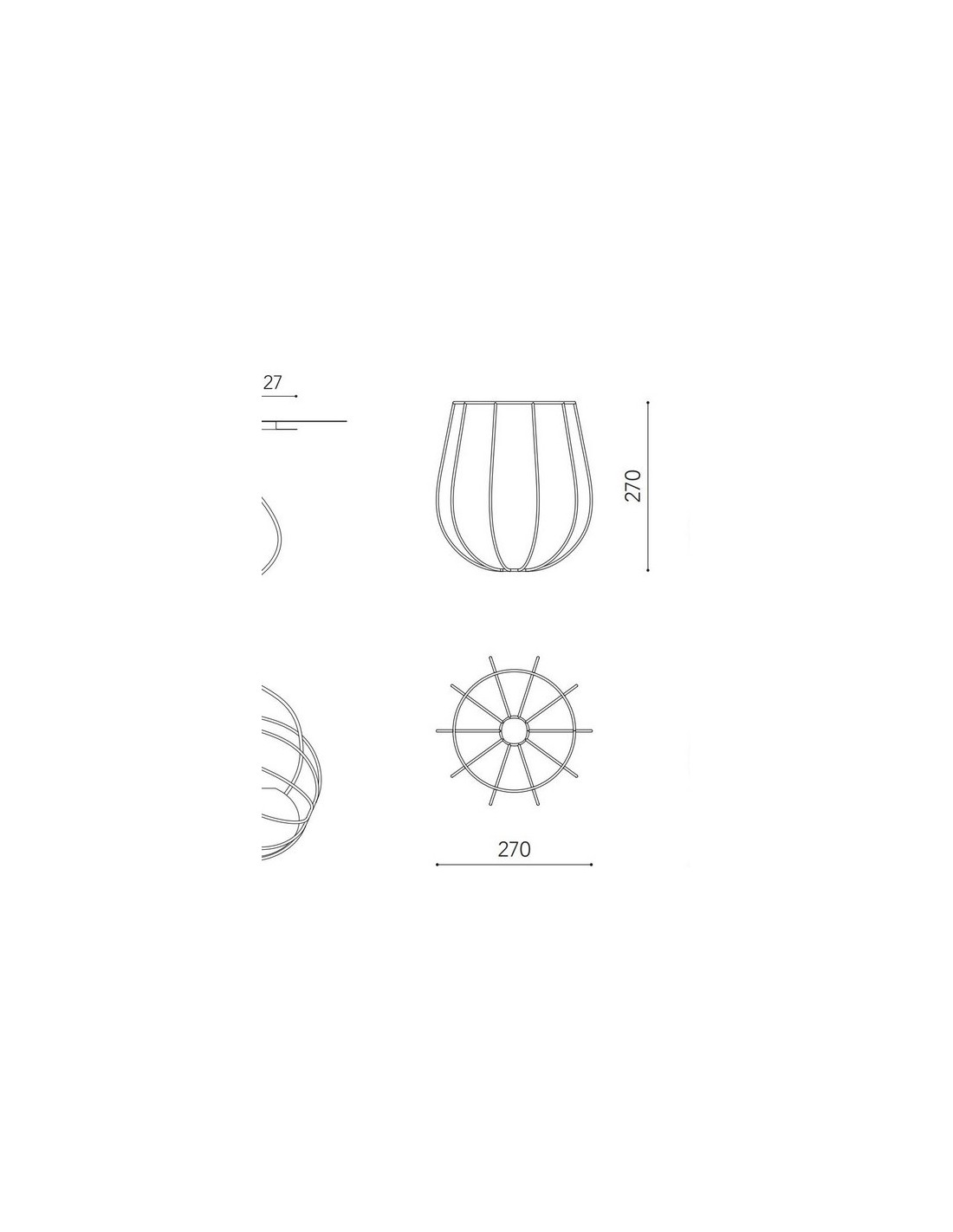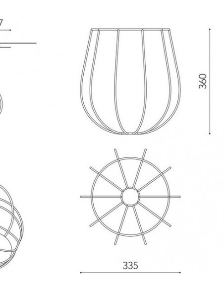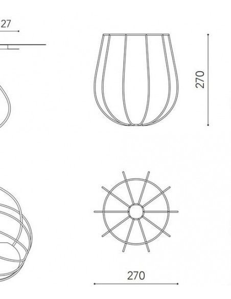 Este producto puede ser adquirido con el acabado en color blanco o en color negro, y también en un tamaño más grande y otro más pequeño: el primero de ellos tiene medidas de 33.5 cm de ancho y 36 cm de alto, mientras que el segundo mide 27 cm de ancho y alto. La fuente de luz va incluida ambas dimensiones, siendo ésta un difusor de cristal opal cuyas características lumínicas son E27 6W 520lm 3000K.