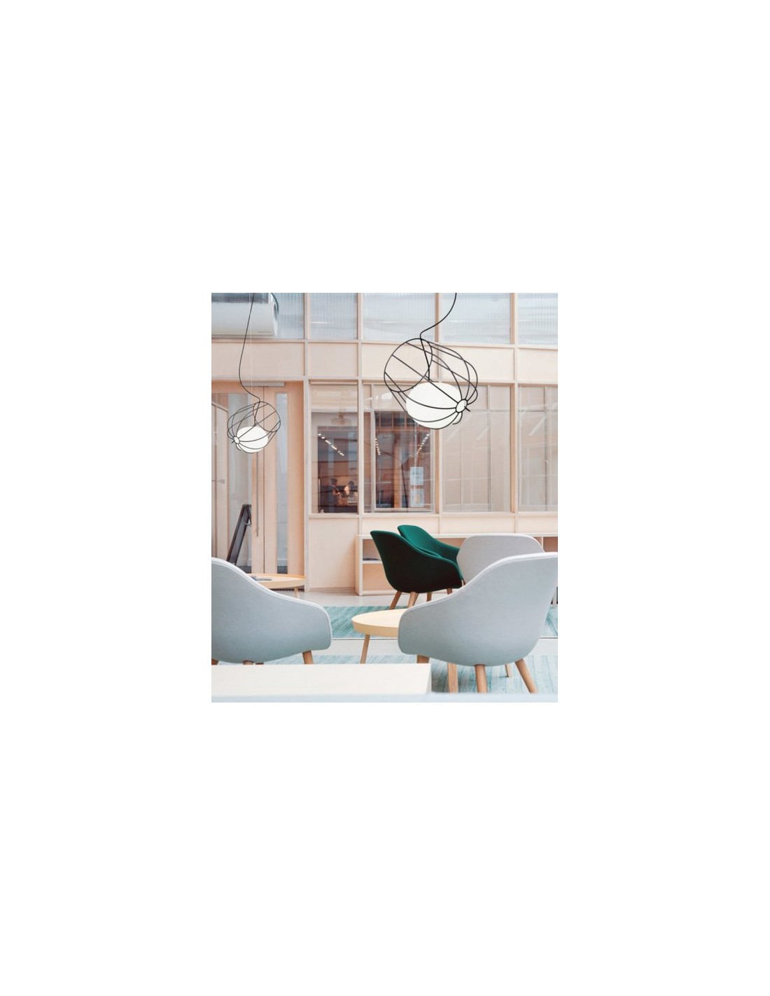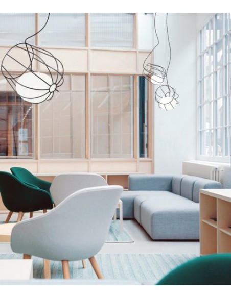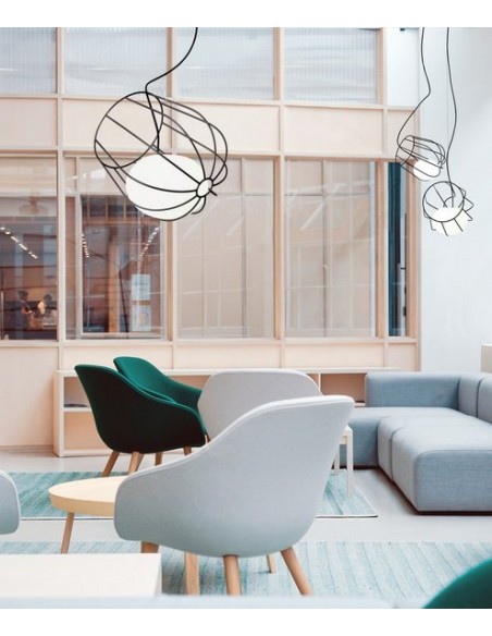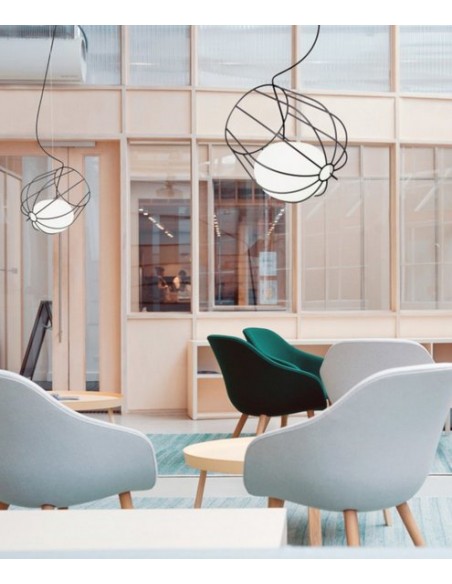 Con esta lámpara colgante se pretende crear la sensación de que la luz flota gracias a la cesta metálica donde está colocado el difusor de vidrio. Light & Plant genera una luz suave y cálida a debido a los 3000K de color de temperatura que emite, haciendo de esta luminaria un elemento adecuado tanto para zonas profesionales como mesas de restaurantes, barras, recepciones, mesas de reuniones y trabajo como también para el ámbito más personal.