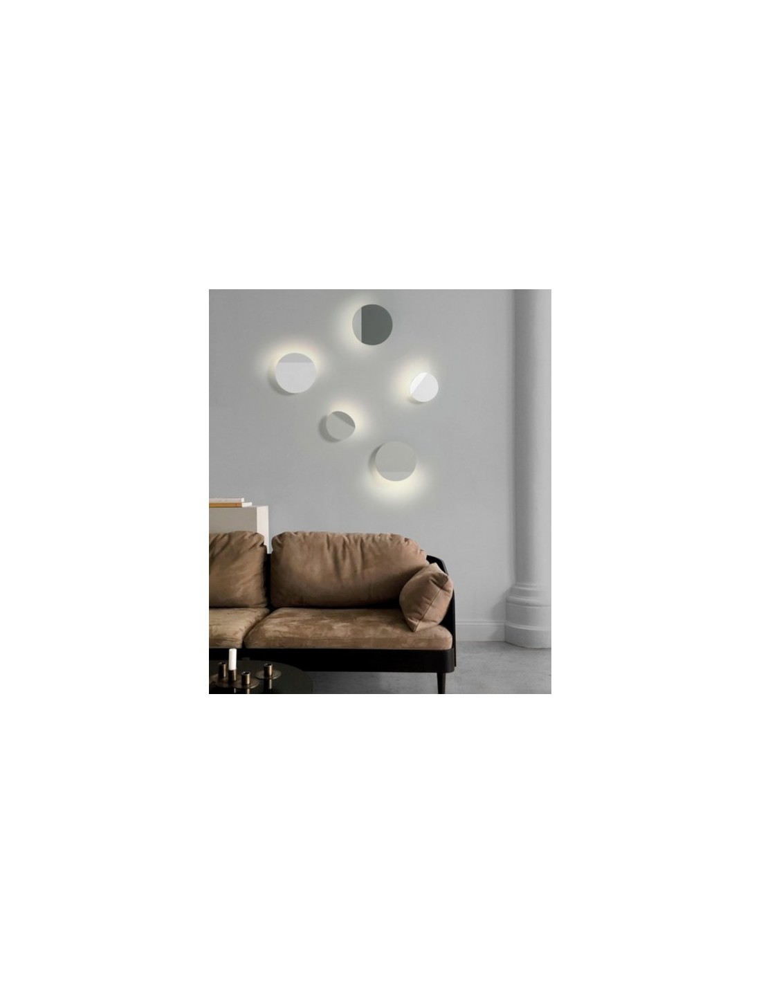 Se trata de un aplique de pared de forma esférica con una apertura que es por la cual sale la luz. Esta característica da mucho juego, ya que permite instalar este producto en cualquier posición de la posición de la pared para que ilumine en la dirección más deseada. Dicha característica le otorga gran versatilidad, permitiendo amplia variedad de combinaciones en paredes, escaleras… de proyectos hábitat, profesionales o contract. Se puede adquirir en 2 tamaños diferentes, grande (diámetro de 21 cm, largo de 3 cm y 20.5 cm de alto) y pequeño (diámetro de 15 cm, largo de 3 cm y alto de 14.5 cm), donde a su vez cada uno de ellos puede adquirirse en 5 acabados diferentes: blanco, negro, gris, perla y verde. La bombilla recomendada es G9 4W 400lm 3000K (luz cálida), la cual va incluida cuando se adquiere el producto.