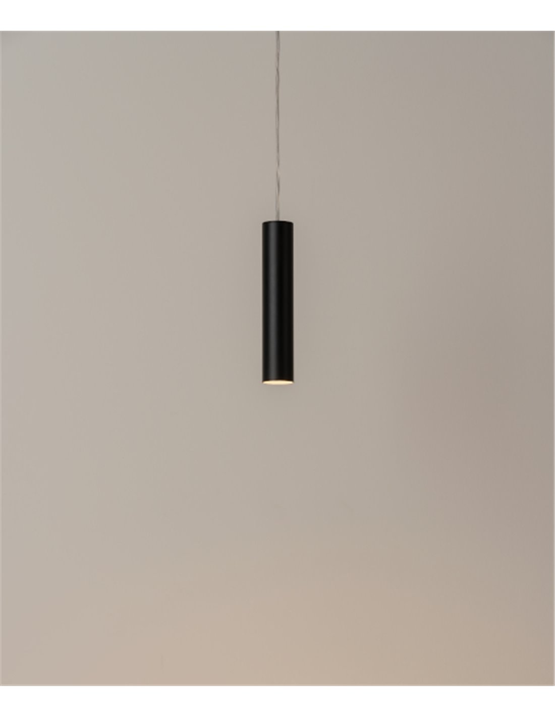 Sobre lámpara colgante Haul de Milán; luz LED regulable 2700K, disponible en 2 colores, Ø 5,5 cm y 300 cm de alto