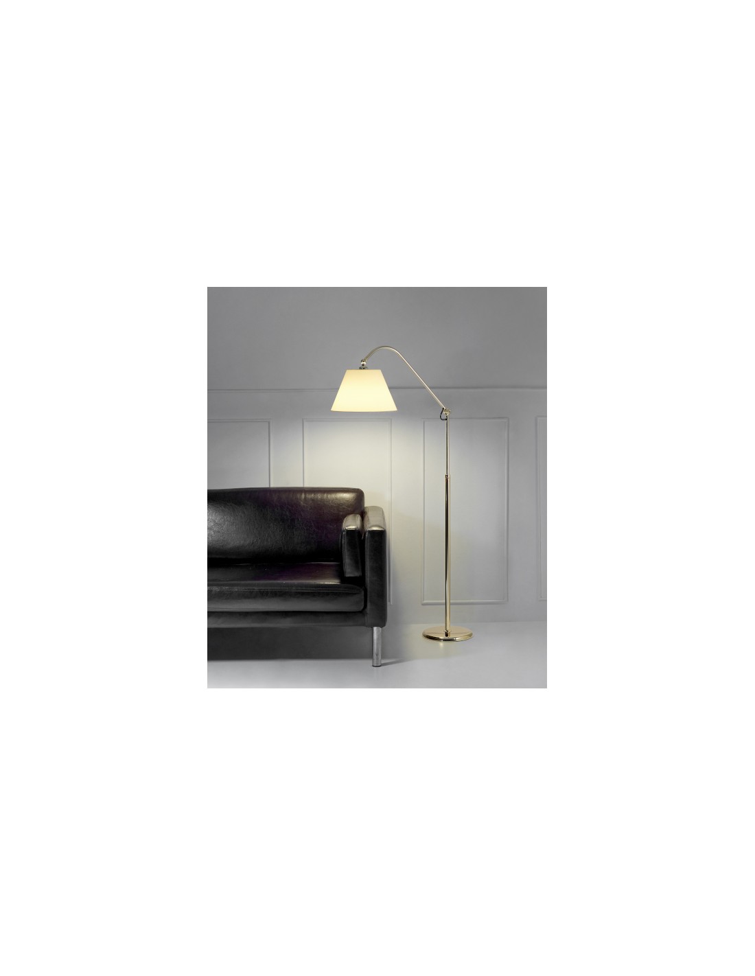 This is a floor lamp made by joining steel and brass, as well as a lampshade made of fabric with a white finish. The golden finish of the structure gives the product a lustre and a vintage look that makes it fit perfectly into more classic settings. It has the advantage that it can be used as a reading lamp in the living-dining room next to a sofa, as it is adjustable in height thanks to the flex that holds the lampshade. The size of this product ranges from 135 cm to 200 cm in height, while the length is 49 cm and the diameter of the lampshade is 30 cm. As for the light source, it uses an E-27 max. 60W bulb (not included) that can be easily switched on and off thanks to the cable it has.