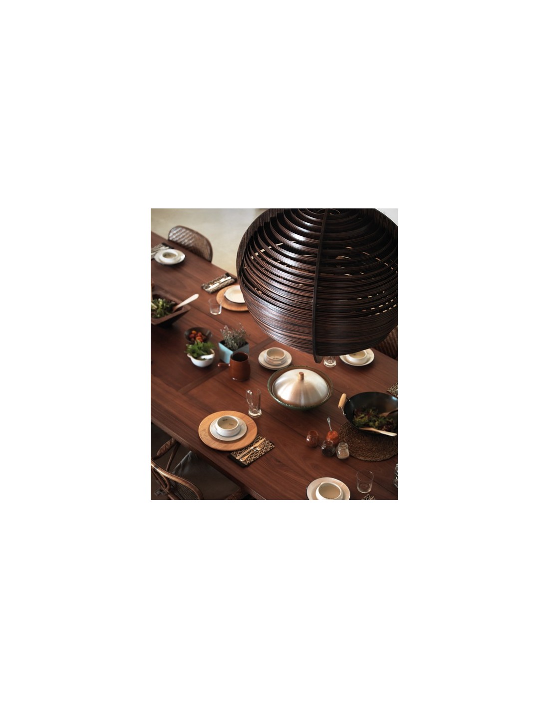 Hanging lamp Ufo. Adjustable height, made of wood. This hanging lamp is available in several sizes and depending on the size can carry from 1 to 2 E27 low-power or LED bulbs.