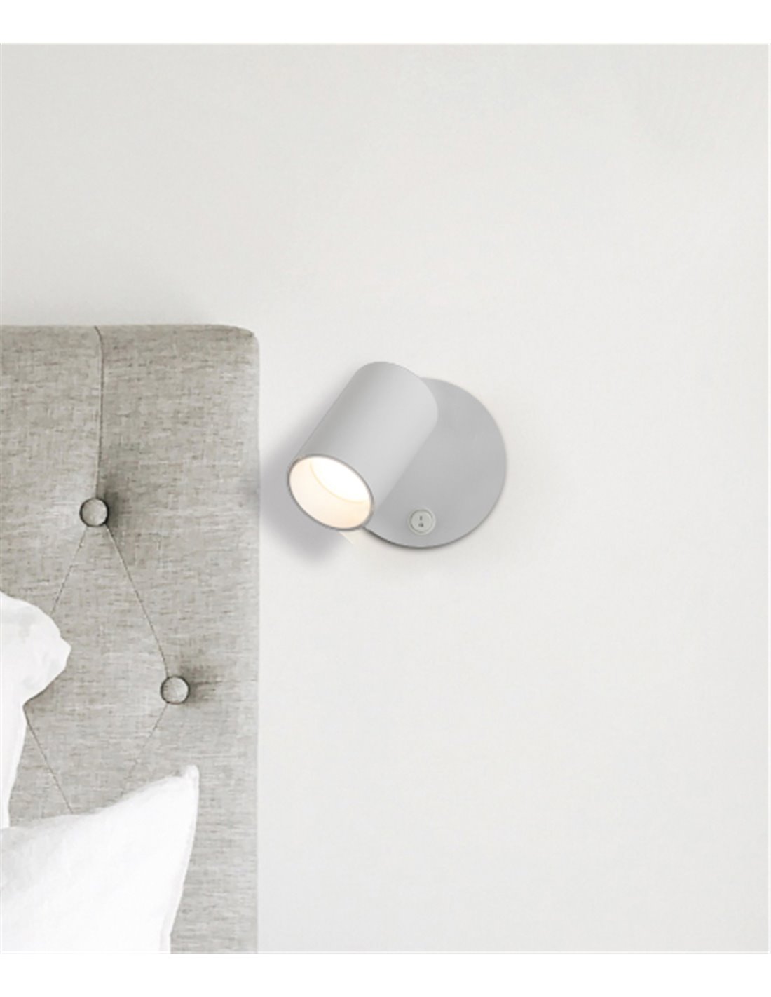 It is a spotlight type wall light that allows it to be oriented in the desired direction at 350º to the sides and 90º up and down. It has a switch on the base that serves as an anchor to the wall for easy switching on and off, and is available in both textured white and textured black. Gina in the wall lamp version is made of aluminium and has been designed to be used as a reading lamp in bedrooms or any area where a support light is required for any activity.