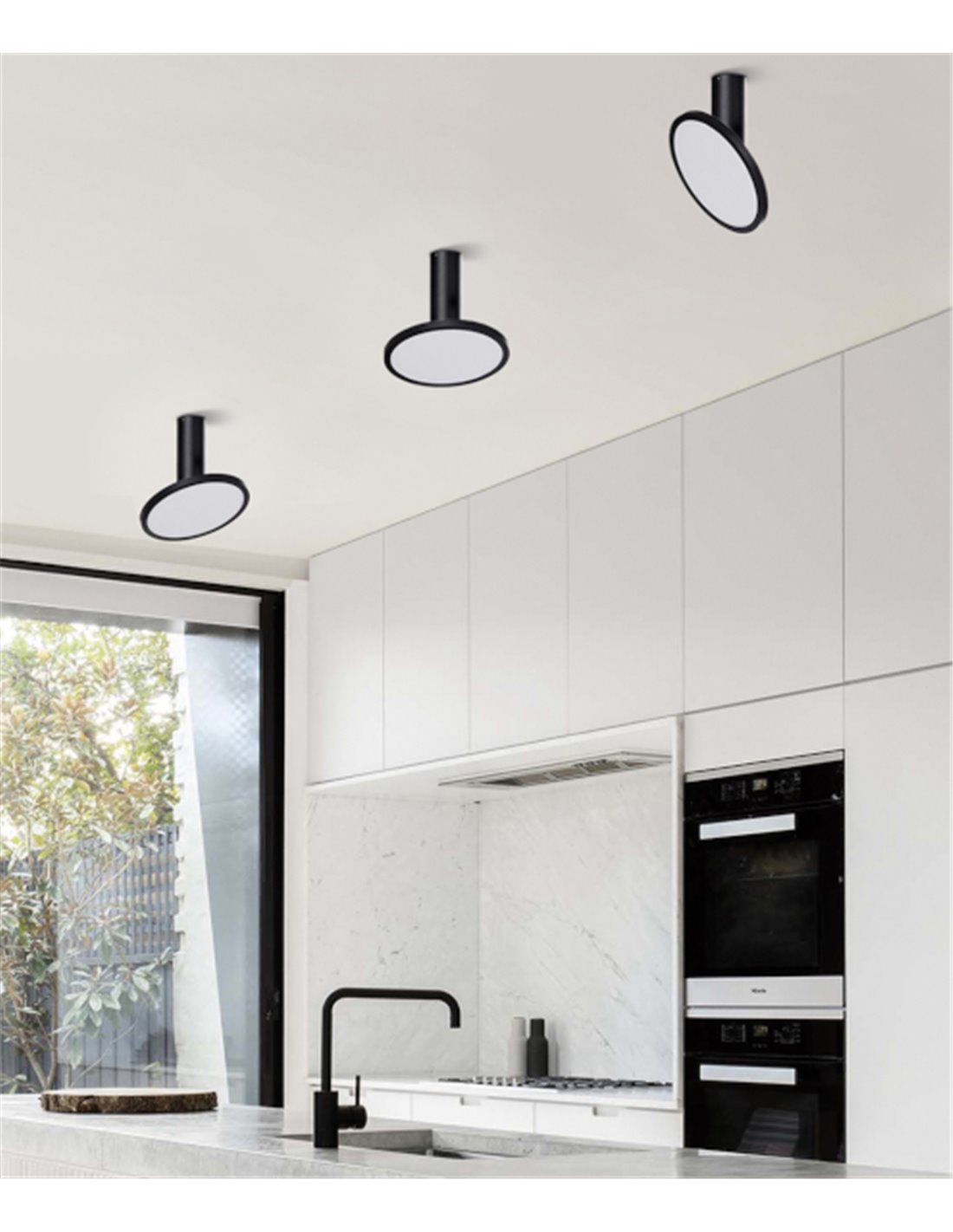 The modern Morgan ceiling light is characterised by its easily adjustable panel that allows the light to be fixed in the most desired direction. Bearing this characteristic in mind, Morgan offers both direct and indirect light, depending on how we want it to be projected. It is a perfect lamp to illuminate the kitchen. Morgan is made of aluminium finished in white or black and its diffuser is made of acrylic.