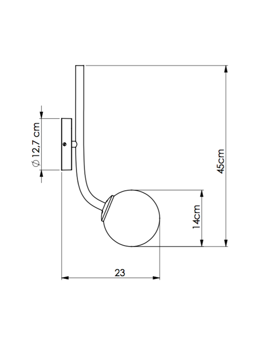 Measurements: Height: 45 cm, Diameter: 14 cm, Width: 23 cm