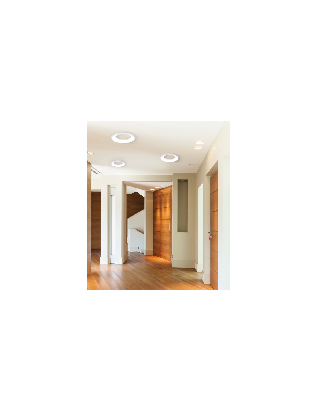 This simple design lamp is made of opalised polycarbonate and has a round shape where the interior is illuminated. It has been manufactured with a dual function, as it can be used as a ceiling or wall light for easy installation on ceilings and walls.