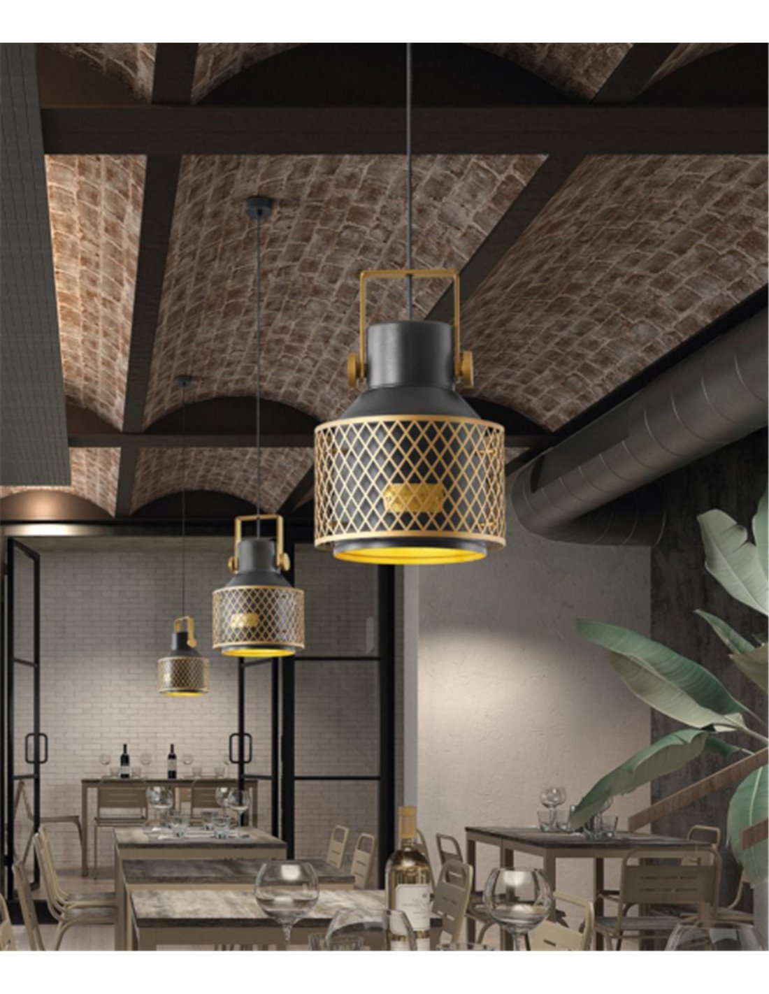 The Tosca pendant light is a light source with a very original design. Its shape and golden details combine very well with vintage and industrial decoration styles.