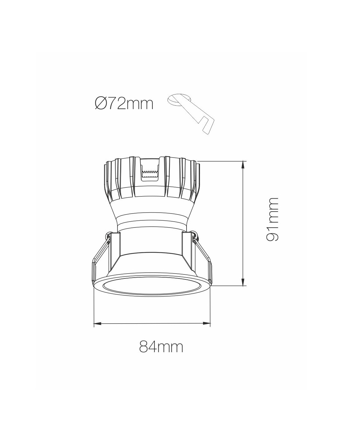 Proyector con foco LED empotrado que destaca por el minimalismo de su estética. Con 8W de potencia, disponible en las temperaturas de color 2700k, 3000k, 4000k o 5000k y alcanza los 105lm/w. Cuenta con un índice de protección IP65, un UGR <16 y un ángulo de 40º. Cuando la luz se refleja en su núcleo interno de color mate, forma un círculo no borroso. Proyector con un RT 2012 que cuenta con la opción de atenuar y convertir la luminaria tradicional en una luminaria conectiva y puede ser controlada por Bluetooth.