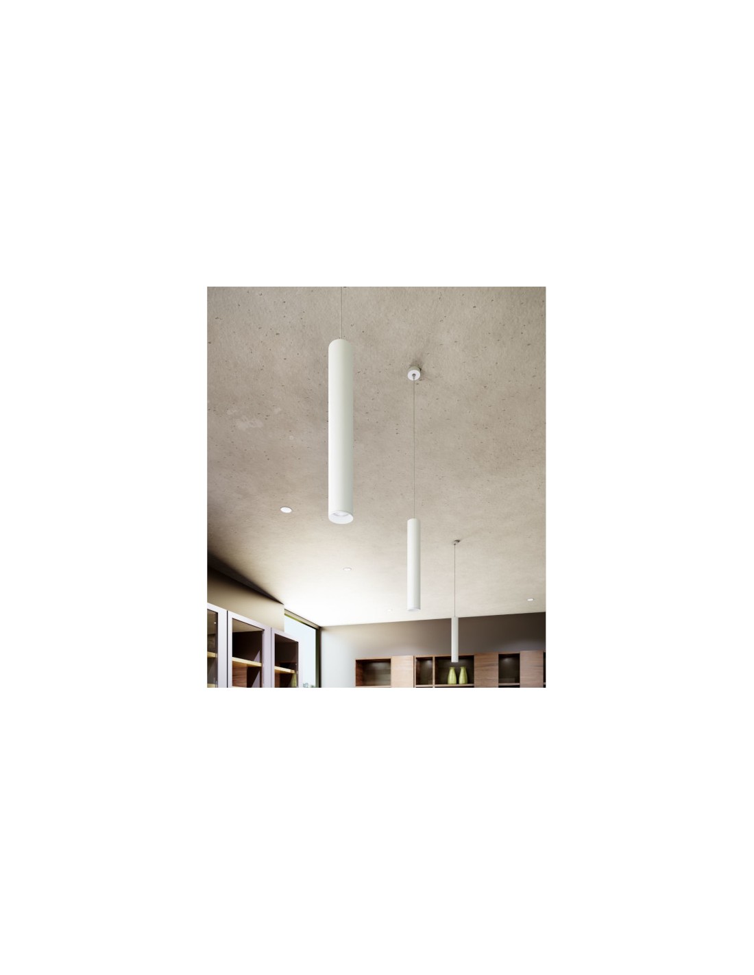 Decorative pendant ceiling light finished in matt black and white, ideal for illuminating any space in the home. With 7W and 25 cm long, the ATMOS product includes three interchangeable optics that allow you to choose between a 15º, 38º, and 60º aperture. It has built-in Switch technology with three different light tones: 2700K, 3000K, and 4000K, and can be placed with the base recessed in the ceiling or surface-mounted.