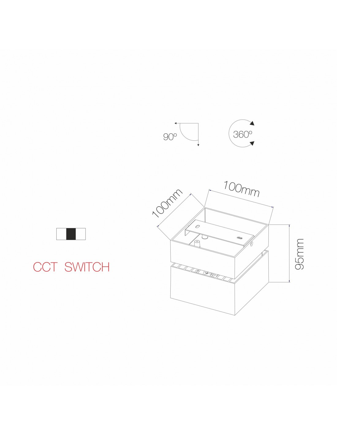 Aplique LED decorativo con 14W de potencia diseñado para uso interior. Es un aplique en formato cuadrado, orientable a 355º con un ángulo de basculación de 90º, permitiendo enfocar y proyectar la luz hacía donde se desee. Puede ser colocado a pared o directamente al techo. Construido en aluminio con acabados en blanco y negro mate.