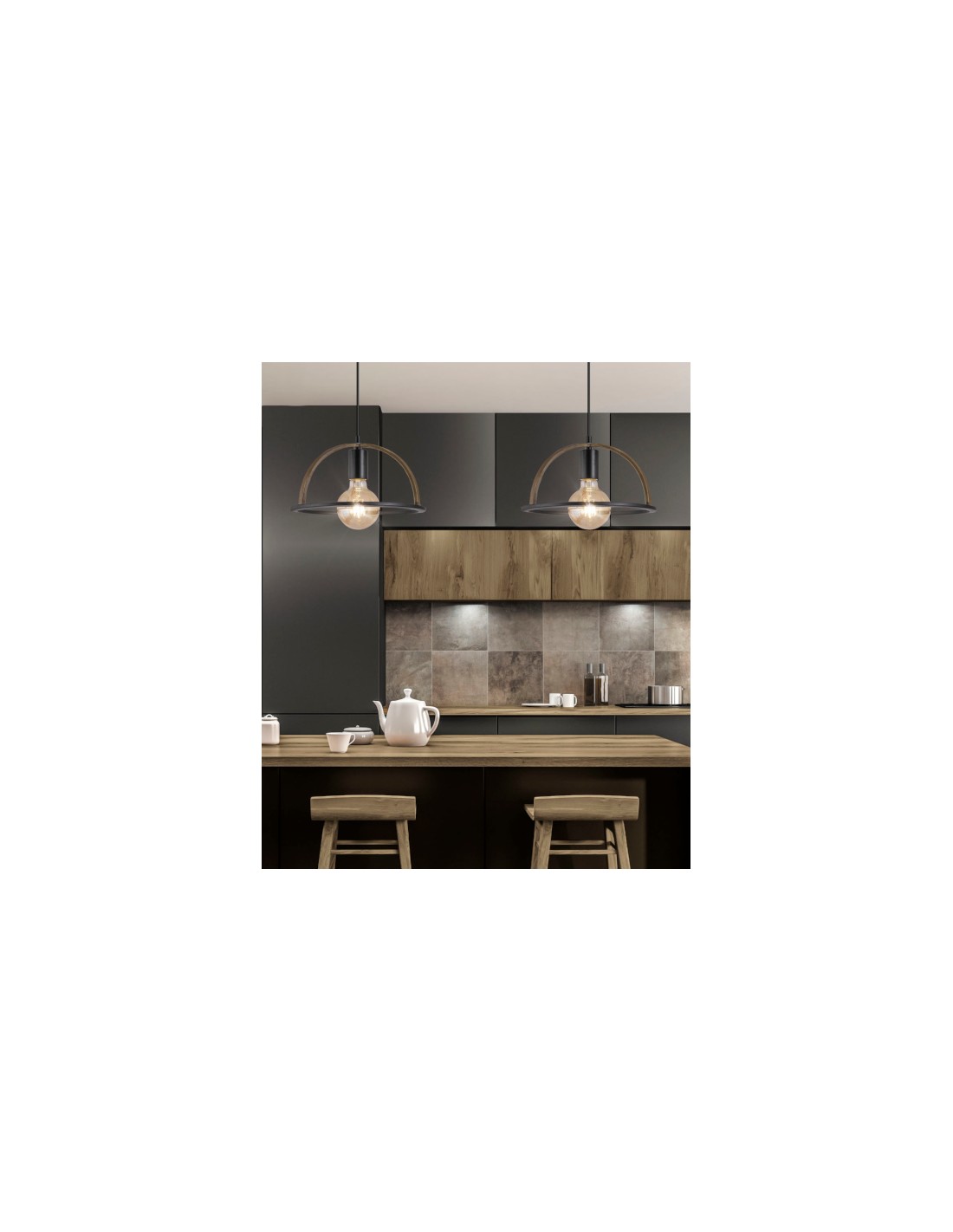 Balta industrial style pendant light, perfect to give an innovative touch to your rooms. It stands out for the simplicity of its shapes and its metal lampshade in black finish, which houses the light bulb inside. It is 30 cm wide, 30 cm long and 23 cm high. It is perfect for use in living rooms, kitchens, cafeterias or restaurants.