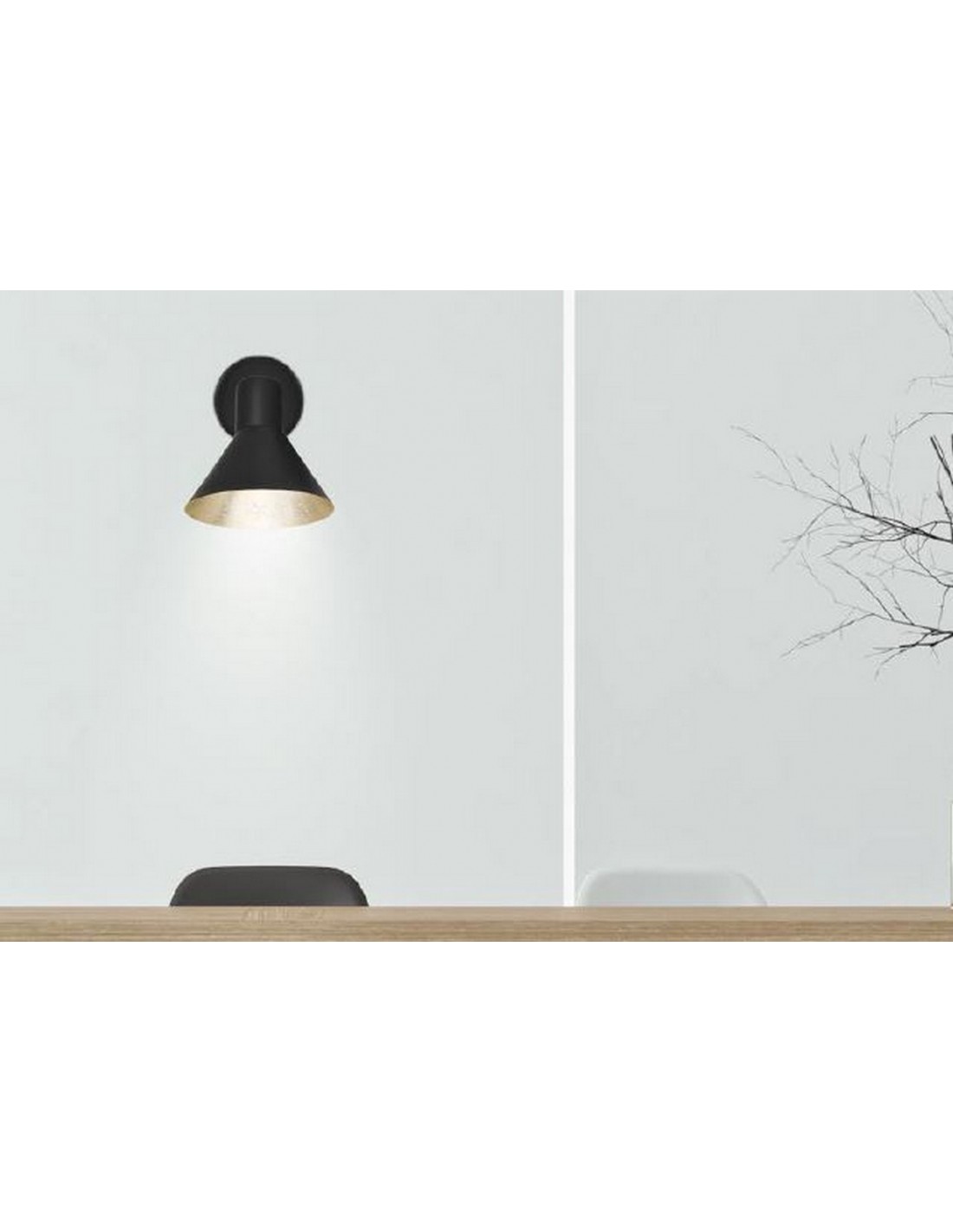 The Kobi wall light has a modern and industrial aesthetic, which makes it a perfect article to add a decorative touch to any corner of the dining room or kitchen, and is also ideal for use in cafes or restaurants. Made of metal, it has two possible finishes: white with a silver leaf finish on the inside or black with a gold leaf finish on the inside. The lampshade is adjustable, which allows the light to be focused on the most desired point.