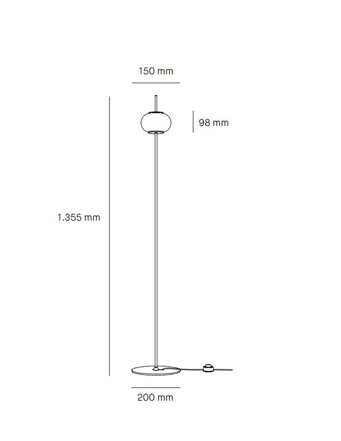 A floor lamp, Astros has a modern look that brings harmony to the room. Its elegant structure consists of an elongated pole made of steel and finished in matt black lacquer. Its main function is to support the blown glass diffuser that emits a fairly powerful light, thanks to two light sources that are located in it (the bulbs are not included).