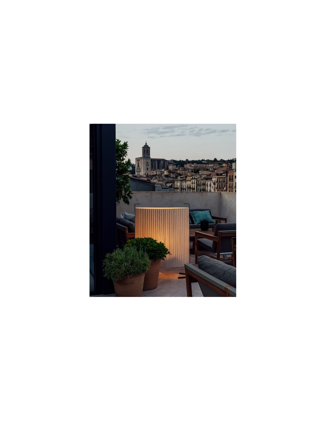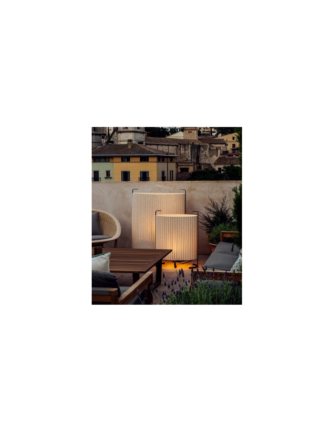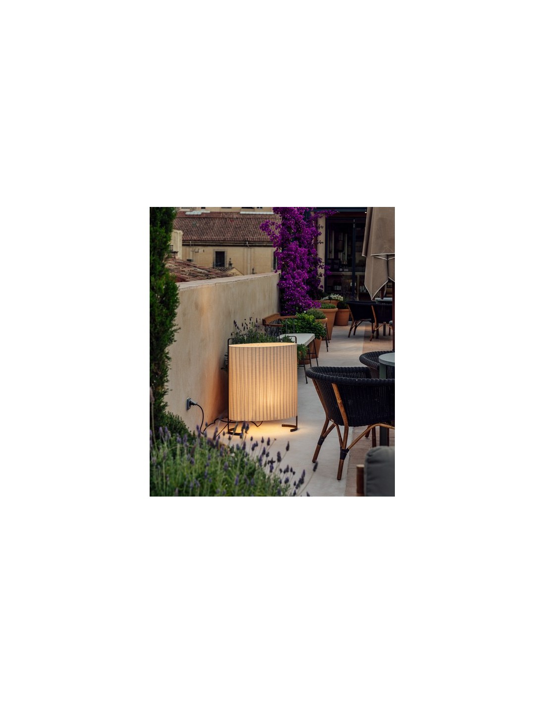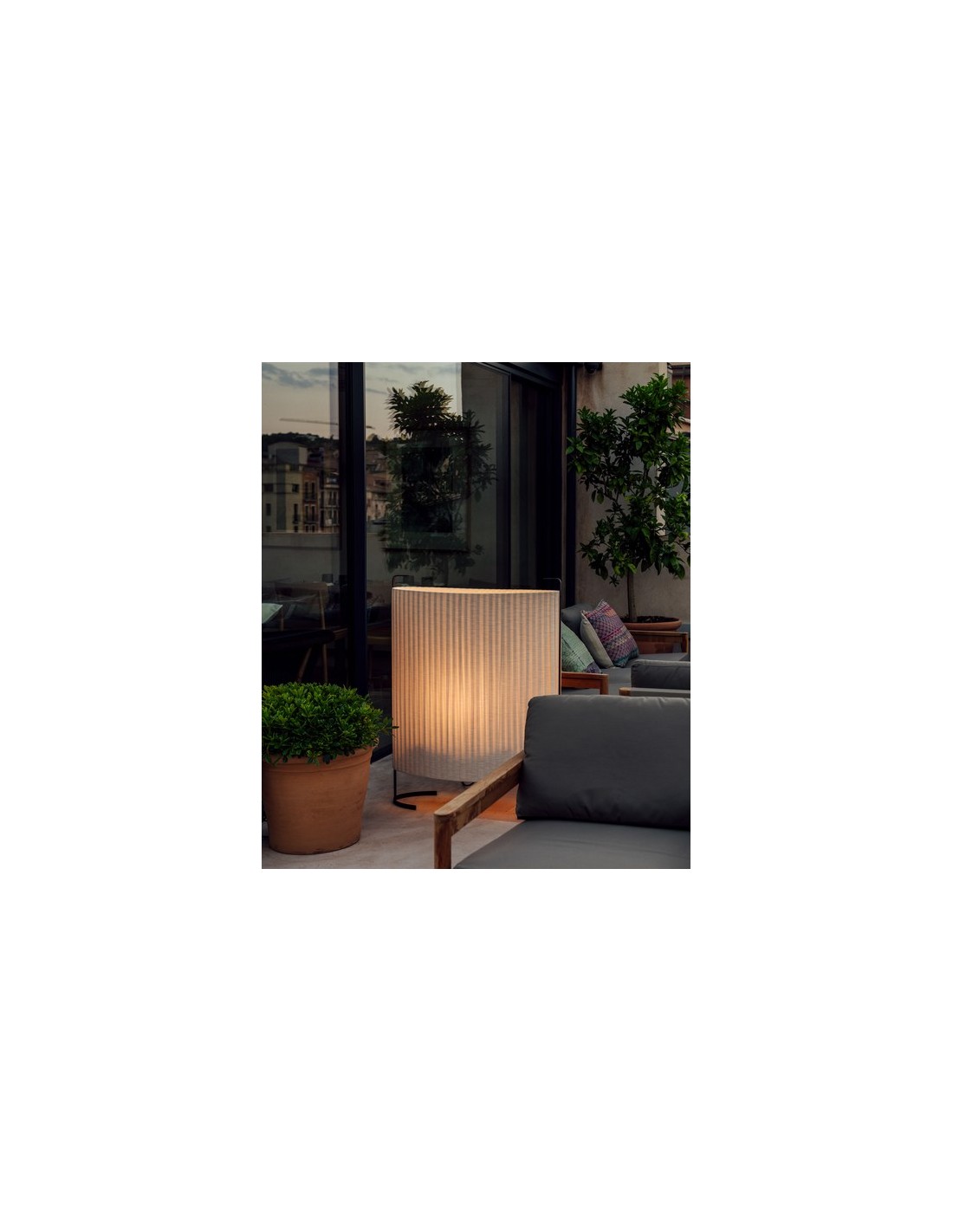 Amid is a spectacular outdoor lamp that can be used both as a floor and table lamp. It is made of a special anti-UVA fabric with a textured foot with a protective treatment. All this makes it possible to use it as a source of light in the evenings on our terrace or porch.